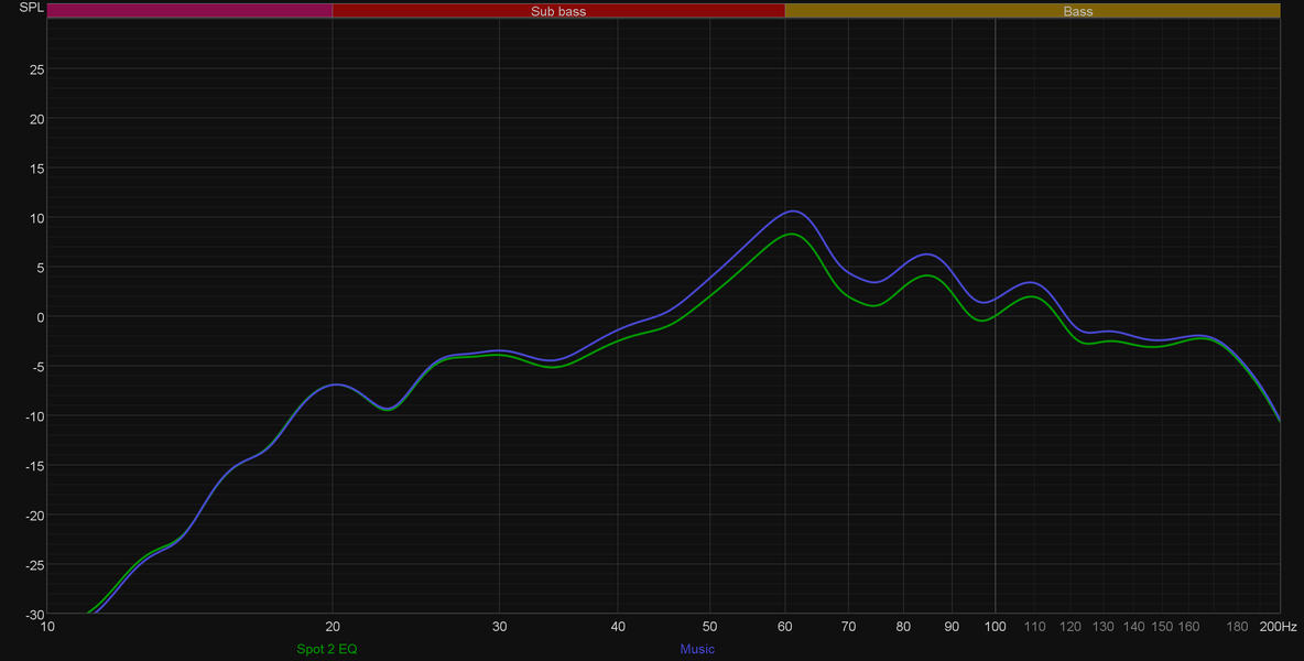 Профиль Music дополнительно подчеркивает и без того заметный акцент в районе 60 Гц, чуть «приподнимая» соседние частоты. Бас получается более плотным и основательным, но самую малость теряет в атаке. Хорошо звучит в рок-музыке или хип-хопе, а вот для джаза или классики есть смысл оставить активированный по умолчанию профиль Flat.