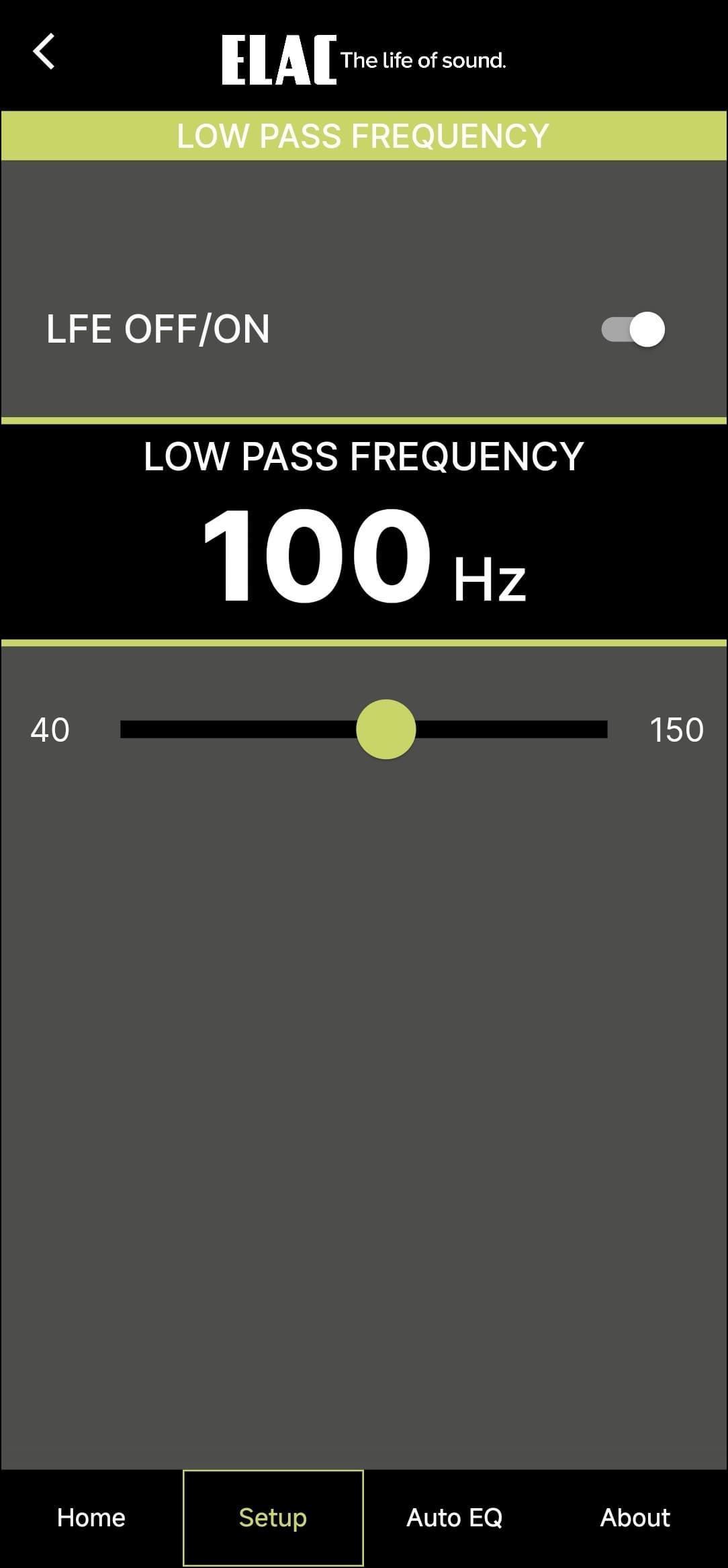 Как мы увидим ниже, у Elac Varro Reference RS500 есть замечательная система автокалибровки под помещение, но крайне многое можно сделать и в ручном режиме, что замечательно — как минимум, все описанные ниже опции пригодятся для согласования работы сабвуфера и другой присутствующей в системе акустики. Первым делом можно настроить кроссовер — частота среза может меняться в широких пределах от 40 до 150 Гц. Плюс возможно его отключение (режим LFE), если источник подает уже подготовленный низкочастотный сигнал.