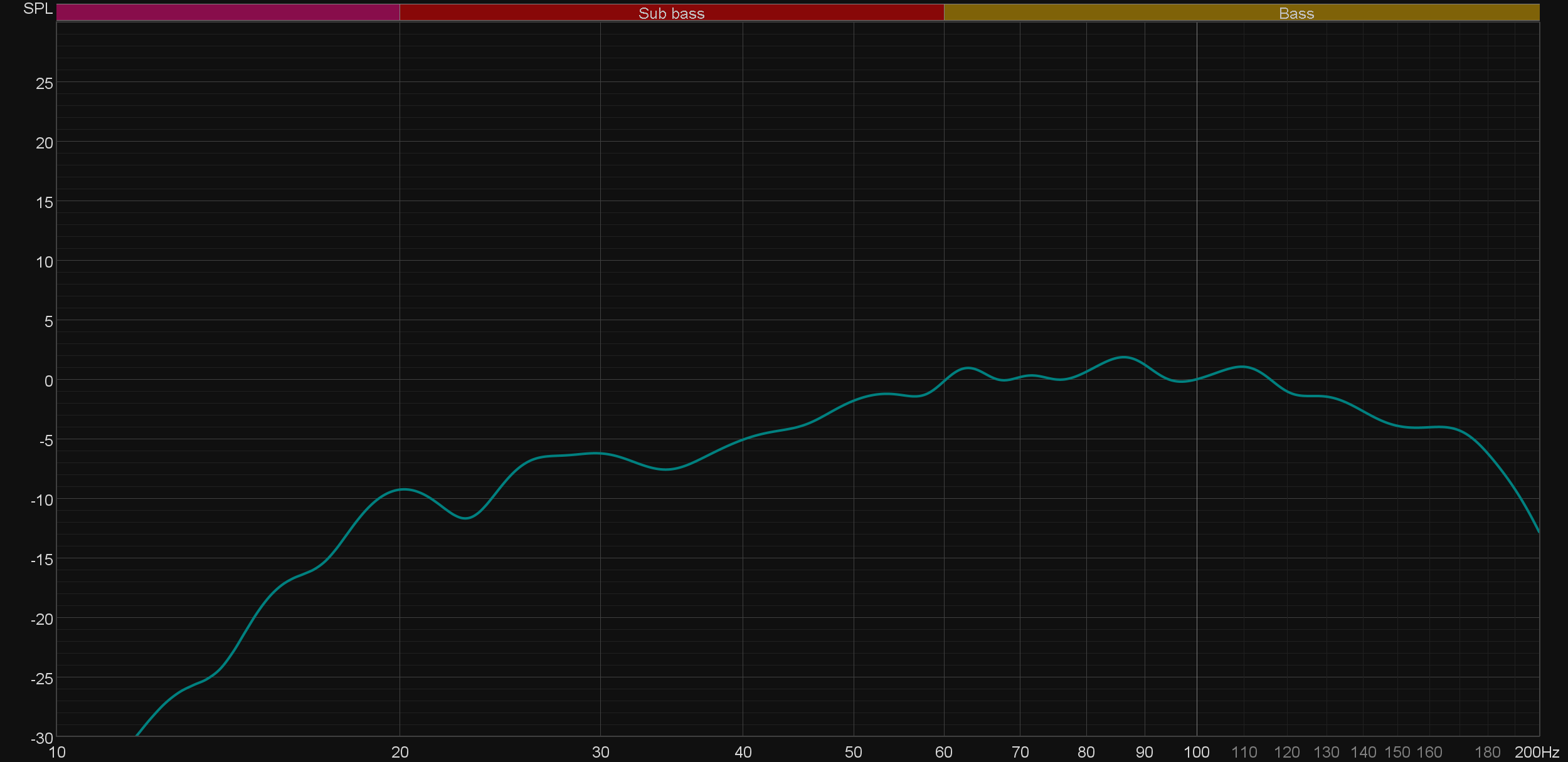 И раз автокоррекция под помещение у Varro Reference RS500, было бы странно ею не пользоваться. Потому сабвуфер мы разместили в акустически подготовленной комнате, но в далеко не в самом удачном месте, руководствуясь больше удобством, чем возможным звучанием. После чего провели первую серию измерений АЧХ, разместив измерительный микрофон в 60 см на оси динамика. Кроссовер выключаем, чтобы посмотреть на максимальный воспроизводимый диапазон.