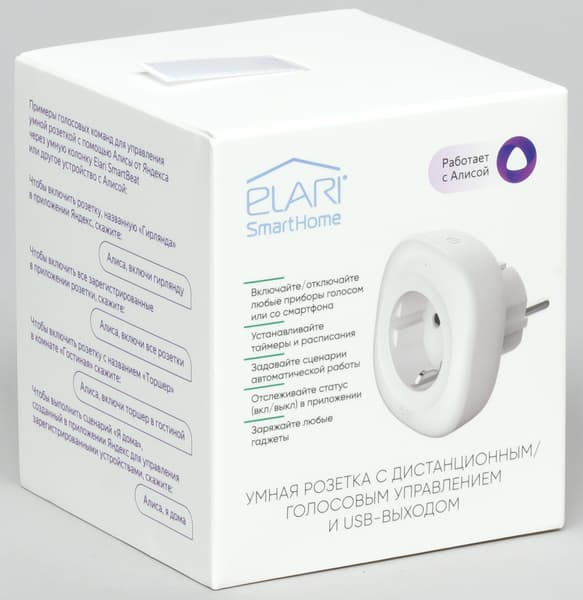 Инфраструктуру «умного» дома Elari создает в партнерстве с Tuya, глобальной IoT-платформой, которая позволяет производителям разрабатывать собственные универсальные решения. Пока в каталоге бренда представлены инфракрасный пульт, робот-пылесос, лампочки, камера и ряд розеток, поддерживающих работу в составе «умного» дома. Мы познакомимся с создаваемой брендом инфраструктурой на примере розетки Elari Smart Socket.