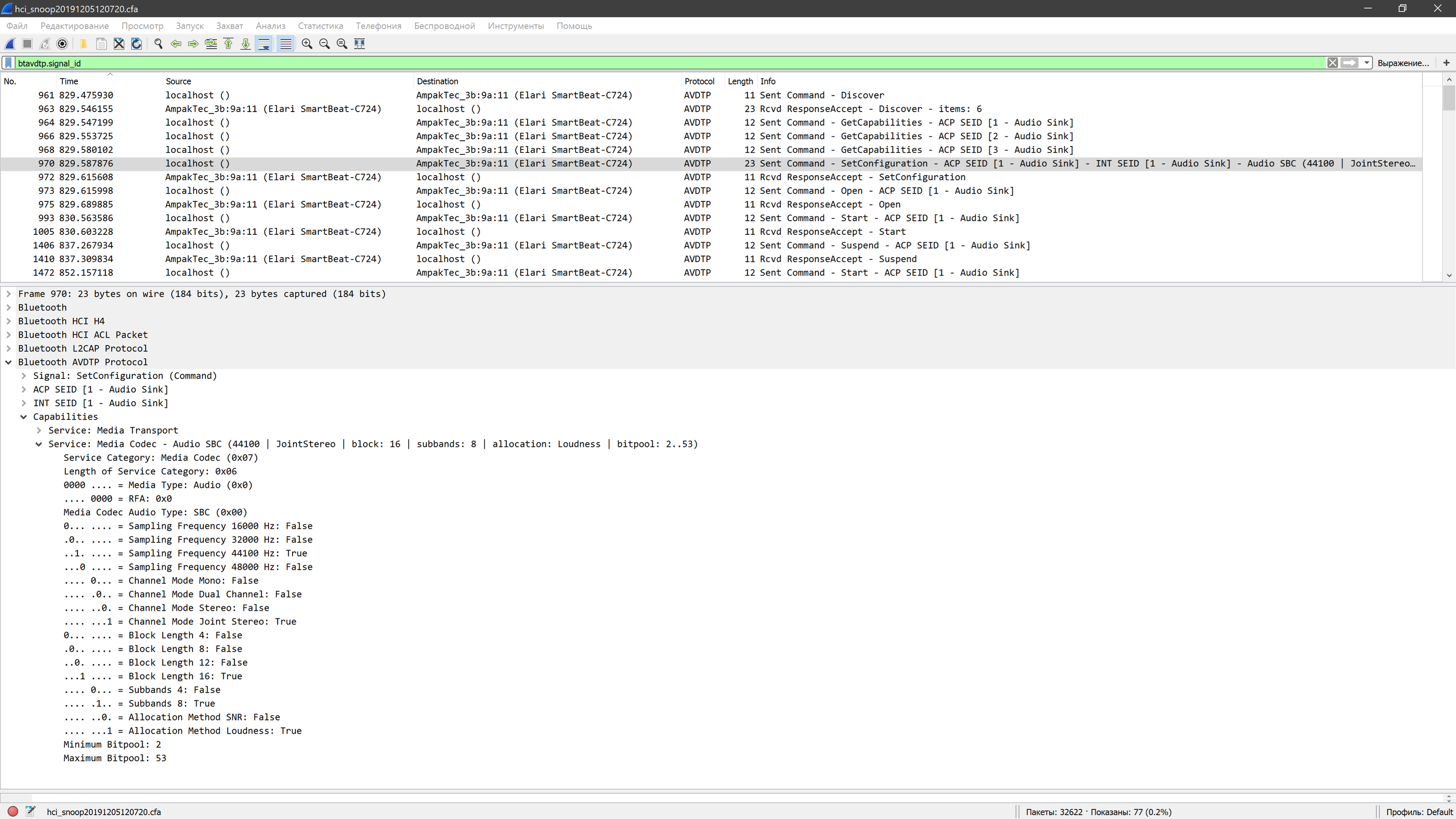 С проводным соединением все просто: подключается и работает, никаких сложностей. А вот с использованием Bluetooth есть интересный нюанс. В описании Elari SmartBeat мы с удивлением обнаружили упоминание о поддержке AAC. Зачем «продвинутый» кодек в устройстве с одним небольшим динамиком, не претендующим на высокое качество воспроизведения музыки — непонятно. Собственно, при беспроводном подключении колонка сообщает только о поддержке SBC, его и использует.