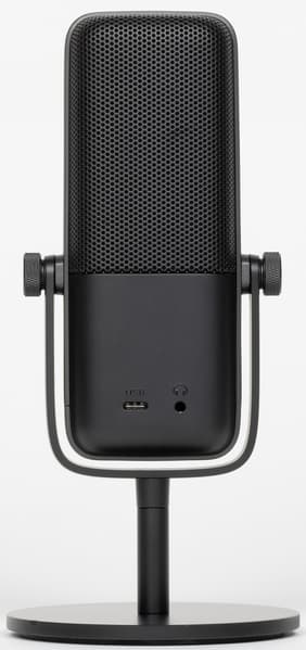 Корпус выполнен из матового пластика черного цвета. Сетка, прикрывающая электретный капсуль диаметром 17 мм и встроенный поп-фильтр, выполнена из металла. U-образное основание тоже металлическое и тоже окрашено в матовый черный.