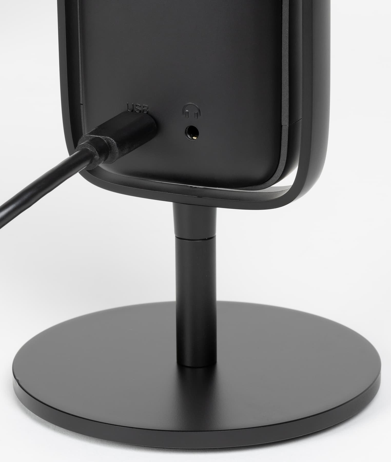 Подключение микрофона осуществляется через порт USB-C с помощью комплектного кабеля, дополнительного питания не требуется — все очень легко и просто. По желанию можно также подключить наушники для мониторинга. А вот дальше микрофон нужно как-то разместить для дальнейшей работы — тут все гораздо интереснее. Комплектная стойка крайне устойчива и прекрасно справляется со своей функцией — можно использовать и ее, но есть нюансы.
