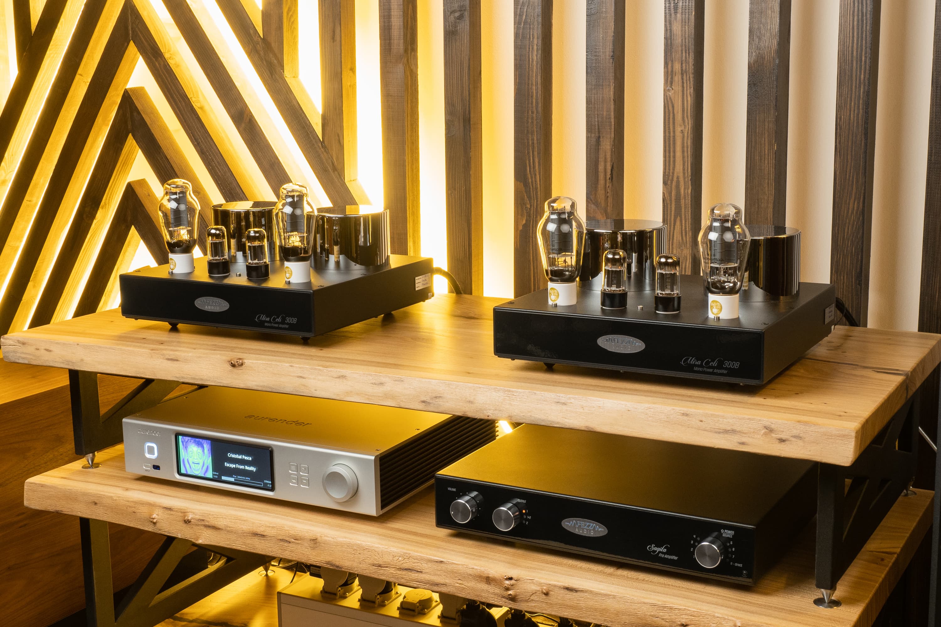 Усилители Fezz Audio мы уже традиционно тестируем сразу с двумя хорошо знакомыми нам комплектами акустики Martin Logan: один с «классическими» динамиками, а второй — с электростатическими излучателями. В качестве предусилителя для пары Mira Ceti 300B Mono Power был задействован Fezz Audio Sagita. В итоге наш сетап выглядел следующим образом: