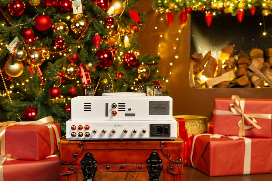 Начнем знакомство с брендом мы с одного из самых «продвинутых» и универсальных усилителей в линейке — Fezz Audio Silver Luna Prestige. Помимо качественных компонентов он интересен тем, что дает своим владельцам широкое поле для экспериментов — поставляется сразу с двумя наборами драйверных ламп, да еще и имеет переключатель режимов тетрод/пентод.