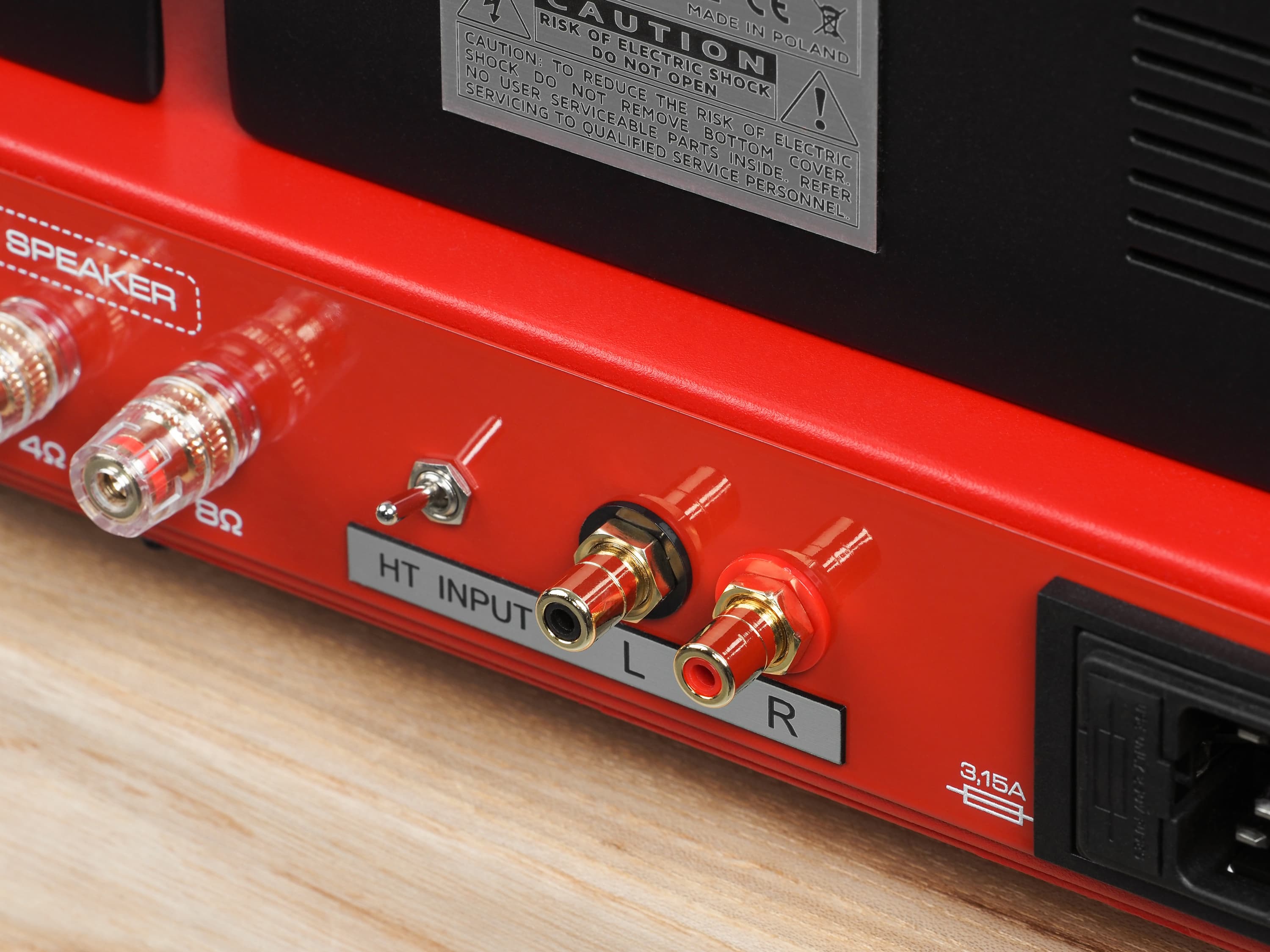 Отдельно надо сказать про наличие входа HT (Home Theater), который позволяет использовать подключенную к Fezz Audio Titania акустику в составе домашнего кинотеатра — с ним не нужно выбирать между качественным стерео для музыки и многоканальным звуком при просмотре кино. Вход оснащен собственным выключателем.