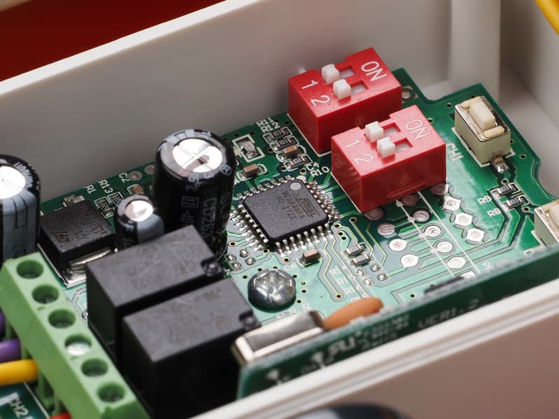 Почти по центру виден модуль, отвечающий за работу пульта дистанционного управления. В качестве РЧ-приемника выступает микросхема TDA5210, «мозгом» служит микроконтроллер ATmega48PA-AU.