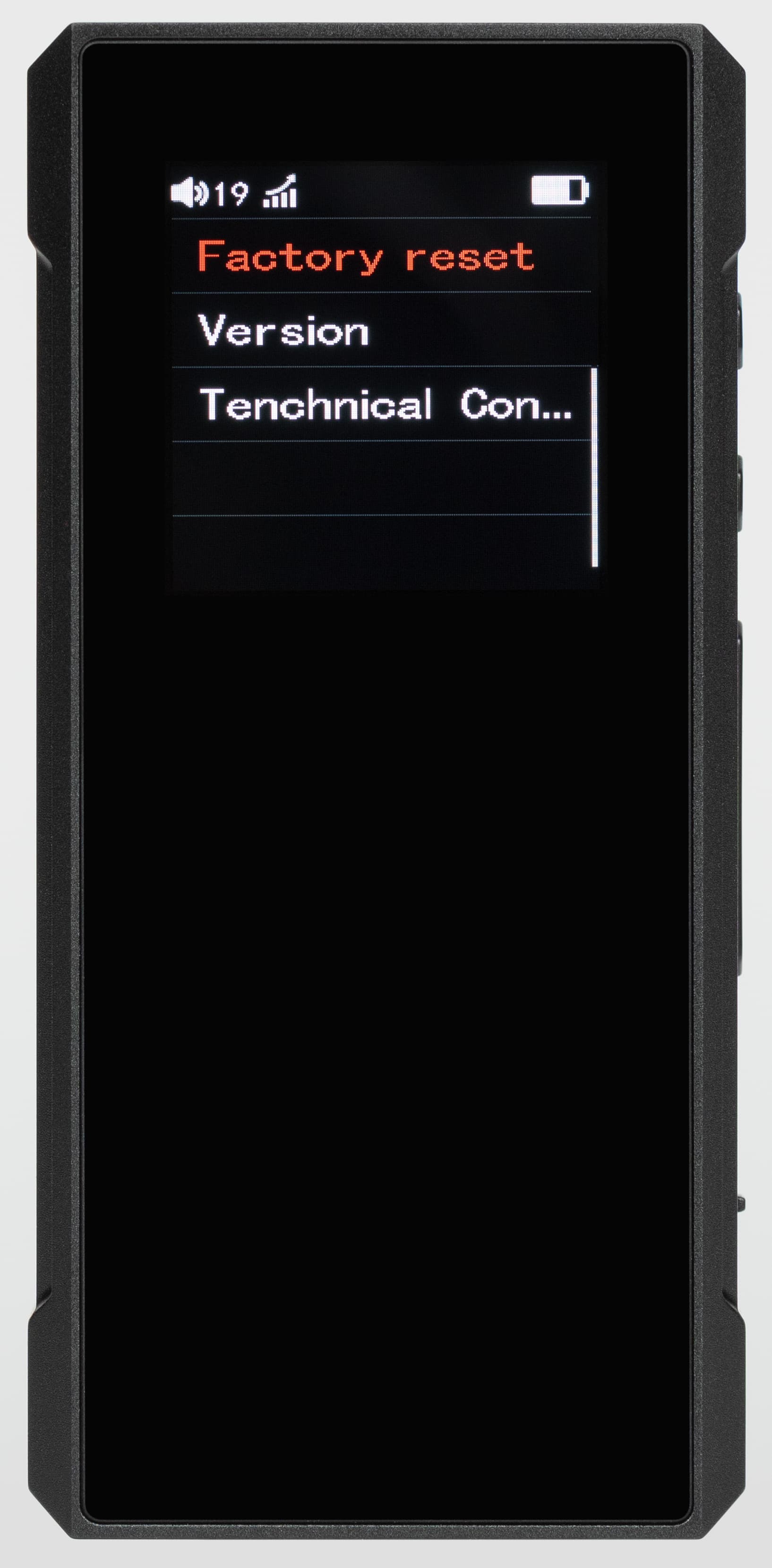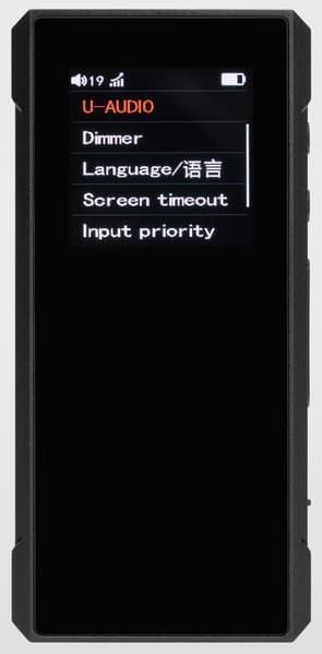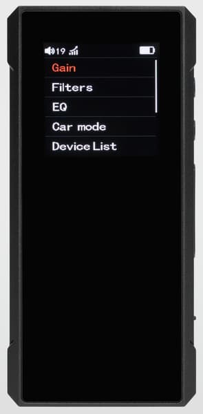 Большой 1,3-дюймовый дисплей отображает всю необходимую информацию: громкость, уровень заряда, используемый кодек, формат воспроизводимого файла или потока... Он же отвечает за отображение меню, шрифты в котором более-менее читаемы, но все же меловаты и ощутимо «пикселят». Необходимость большого экрана в данном случае вообще под вопросом — в плане информативности он не так-то и далеко ушел от маленького и монохромного, который мы видели в BTR5. Но обновленные размеры корпуса позволили поставить что-то посимпатичнее — почему бы и нет.