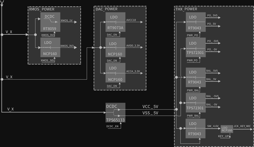 Аналоговые и цифровые секции разделены, а для регулировки напряжения используется аж 13 стабилизаторов — все ради максимального снижения уровня искажений сигнала.