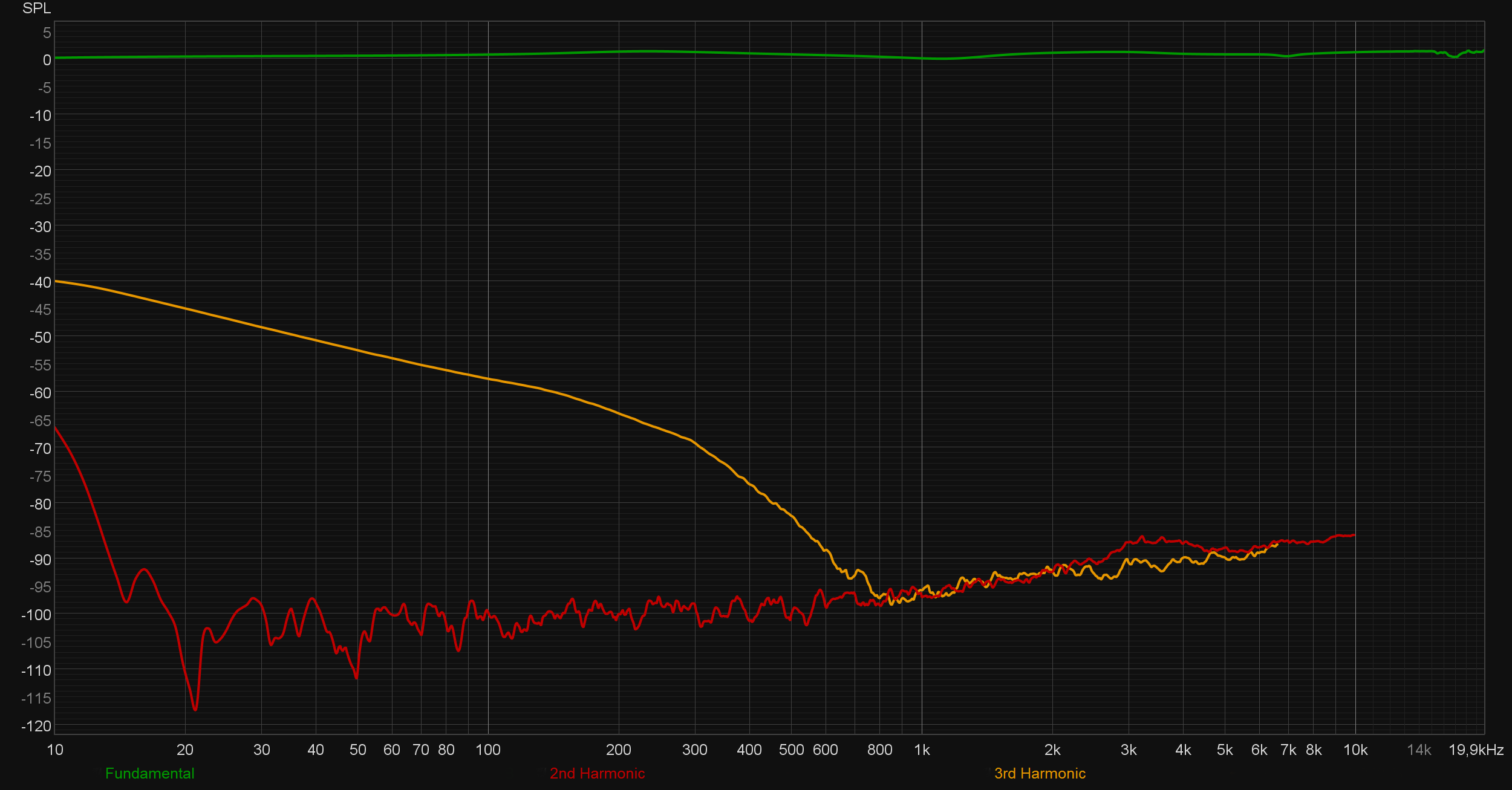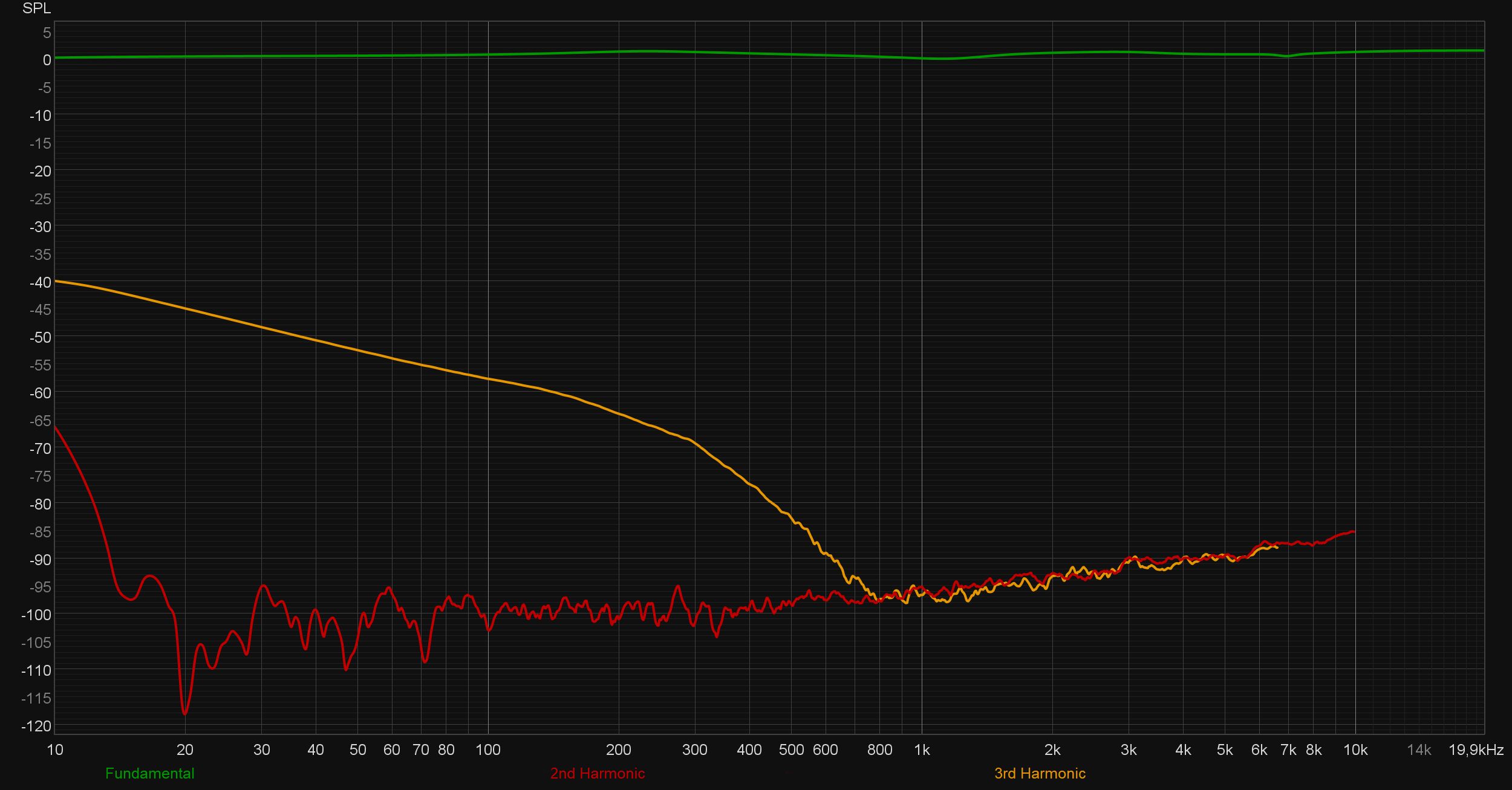 Добавим компенсацию третьей гармоники — график выглядит еще чуть более интересно, но становится очевидно, что эффективно система работает в основном в ВЧ-диапазоне. Но главное — работает и вполне пригодна к использованию при Bluetooth-подключении.