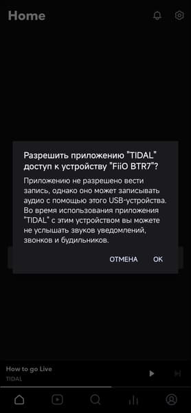 При подключении к Android-смартфону при помощи кабеля FiiO BTR7 корректно работает с плеерами, поддерживающими режим Bit-perfect, в нашем случае — USB Audio Player. Все форматы корректно воспроизводятся, в том числе — разнообразные «хайрезы». Приложение Tidal тоже сравнительно давно научилось взаимодействовать с внешними ЦАПами, но по-прежнему работает не так стабильно, как хотелось бы. Но тут уж вопросы не к тестируемому устройству, а к разработчикам Tidal.