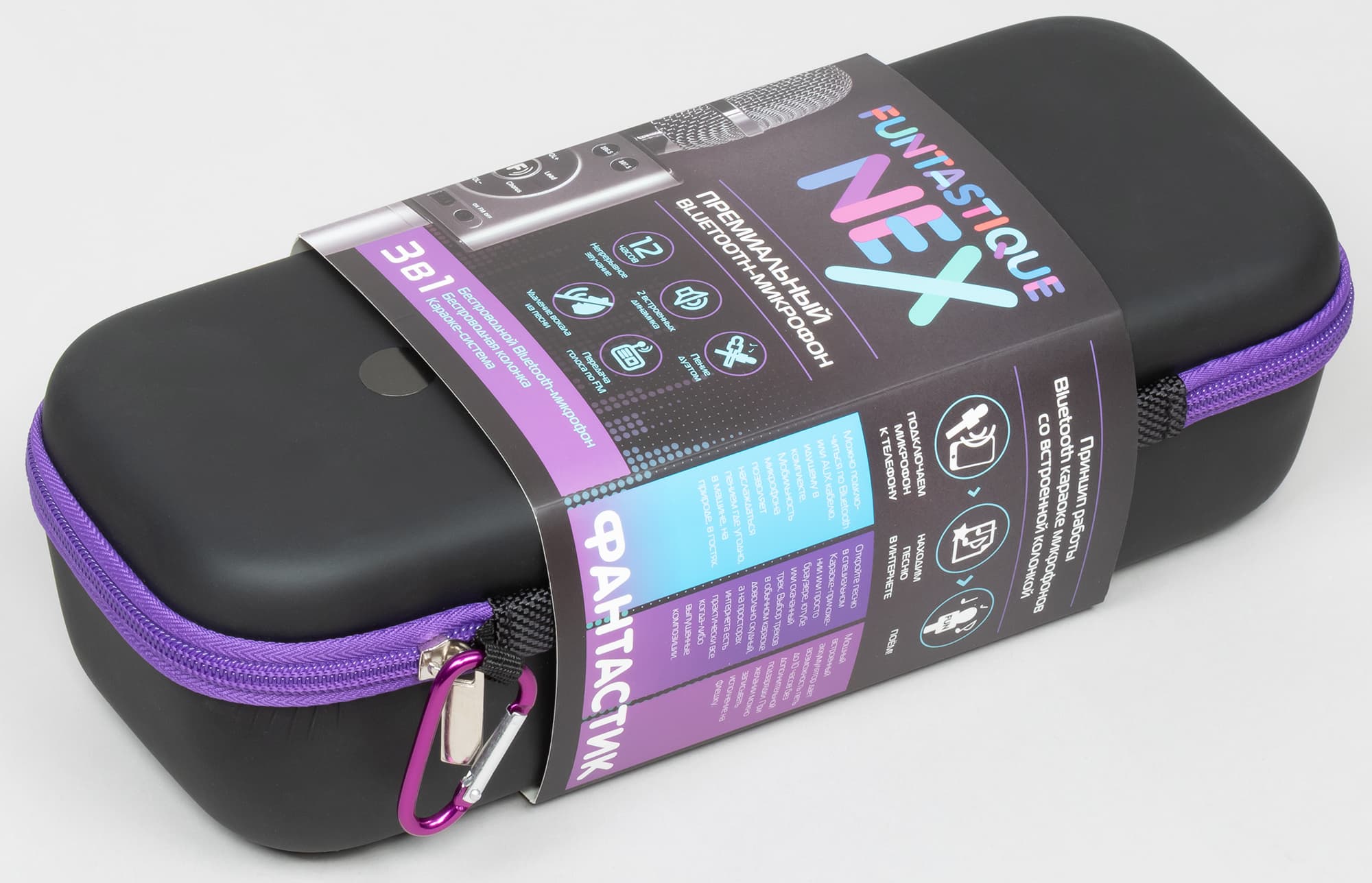 Возвращаться к тестированию этого класса устройств мы не планировали, так как сильно сомневались в способности других его представителей порадовать оригинальными и интересными результатами тестов. Немного развеял эти сомнения микрофон под названием, образованным смешением двух слов: fantastique (фантастический) и fun (веселье). Производитель называет свой Funtastique Nex премиальным Bluetooth-микрофоном и анонсирует целый ряд интересных особенностей — от кейса для переноски в комплекте до встроенного FM-передатчика. При этом и стоит Funtastique Nex почти в два раза больше, чем герой прошлого обзора. В общем, бюджетное устройство этого формата у нас уже было, теперь посмотрим на «премиальное».