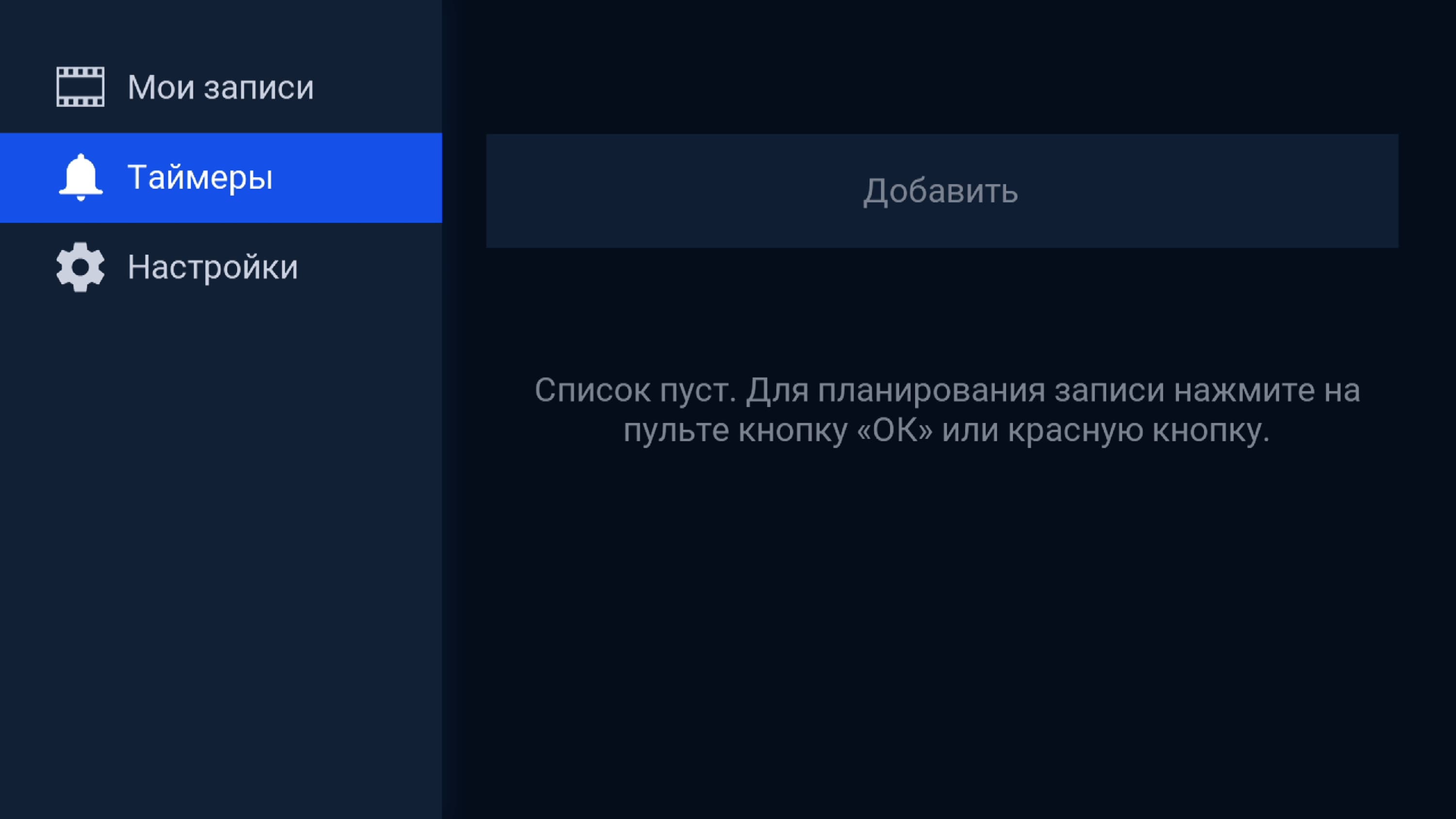 В большинстве телевизионных приставок имеется функция записи эфира. Наша приставка — не исключение, здесь тоже имеется аналогичное приложение. Правда, необходимость в нем теперь видится сомнительной, поскольку многие каналы доступны не только в прямом эфире, но и в архиве, который хранится удаленно, в облаке Триколора. Такая возможность определяется правообладателем контента, он же регулирует суровость ограничений. Например, какие-то каналы ограничивают длительность своего архива, а у центральных федеральных каналов архив почему-то отключен напрочь.