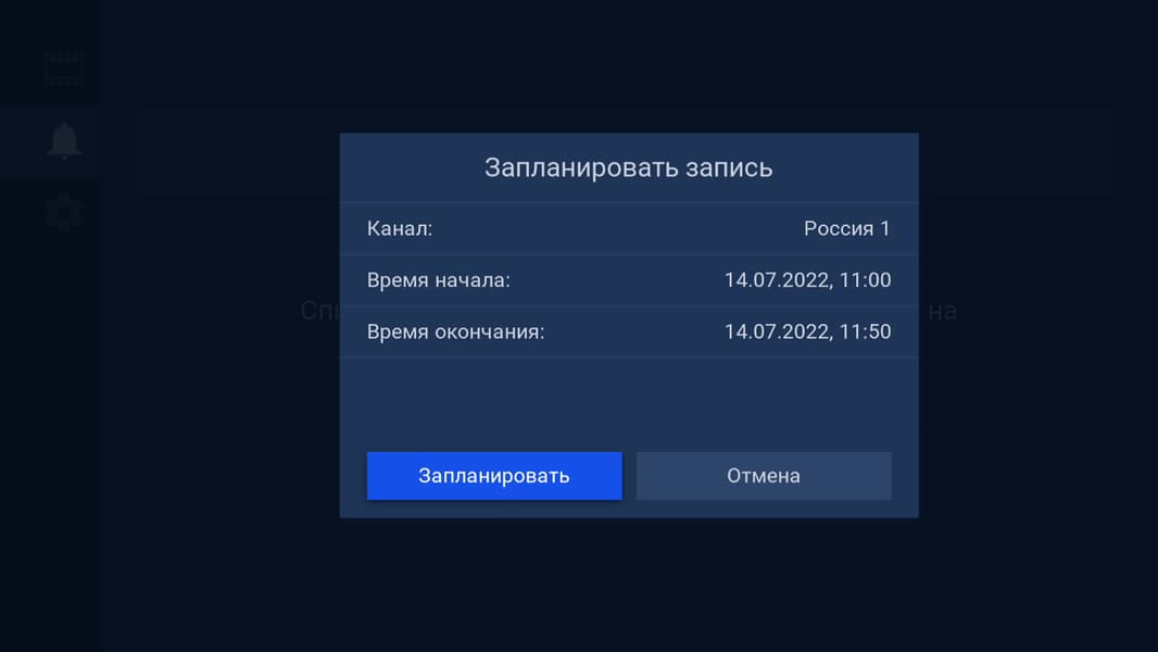 Но случаи бывают всякие, и необходимость записать кусочек эфира может появиться когда угодно. Запись возможна на USB-носитель — обычную флэшку, диск или карту памяти, которая подключена через картовод. Помимо ручного включения записи, в приложении предусмотрен планировщик.