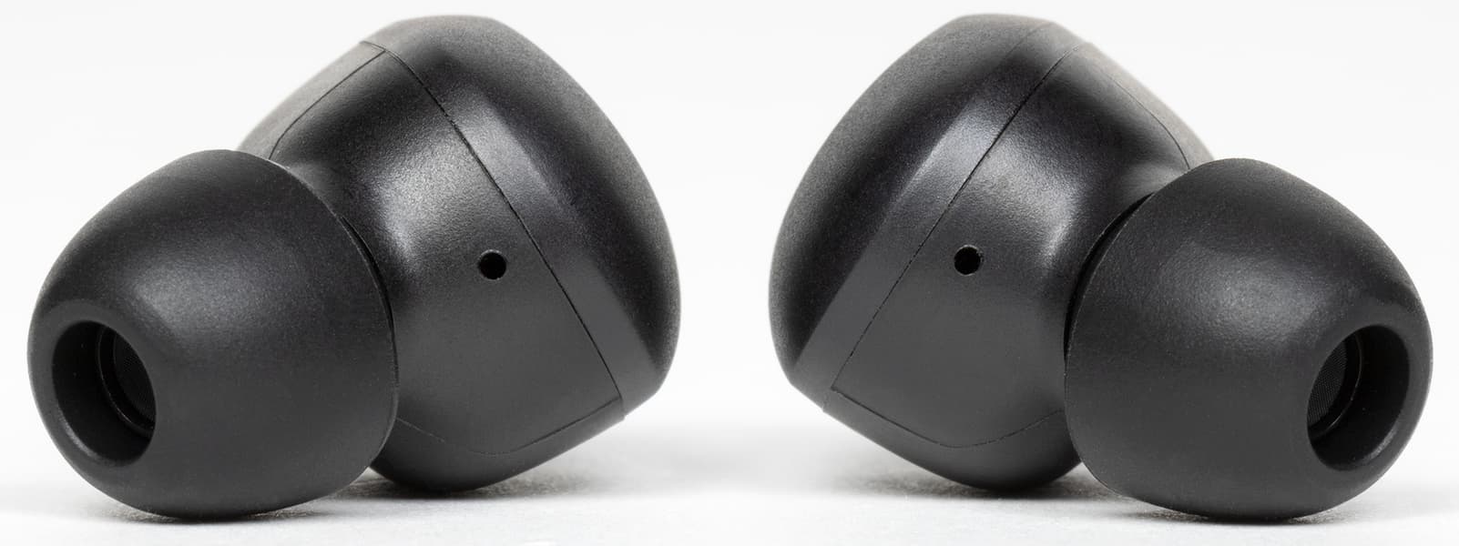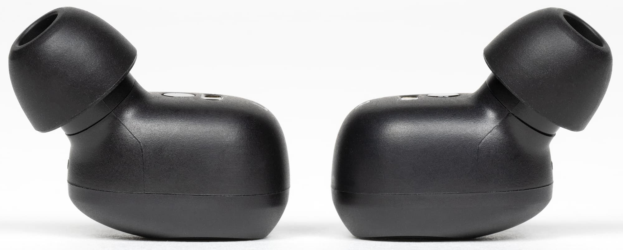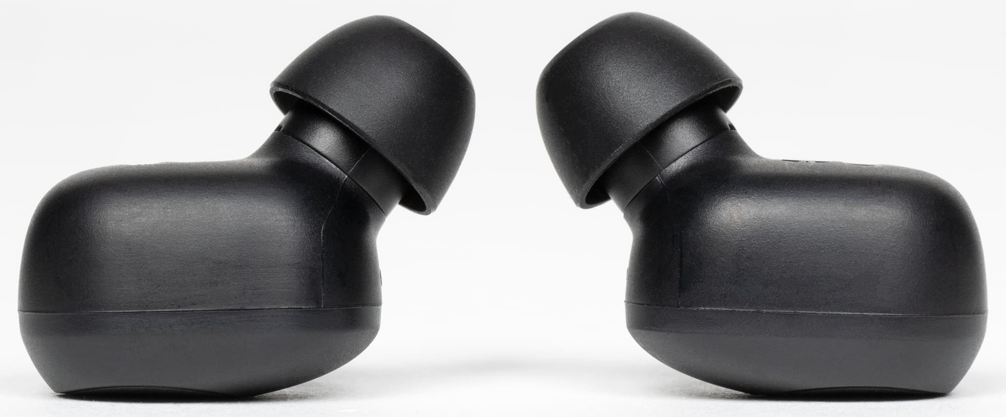 При взгляде сбоку хорошо заметно, что звуковод у наушников довольно-таки длинный — именно он обеспечивает надежную посадку.