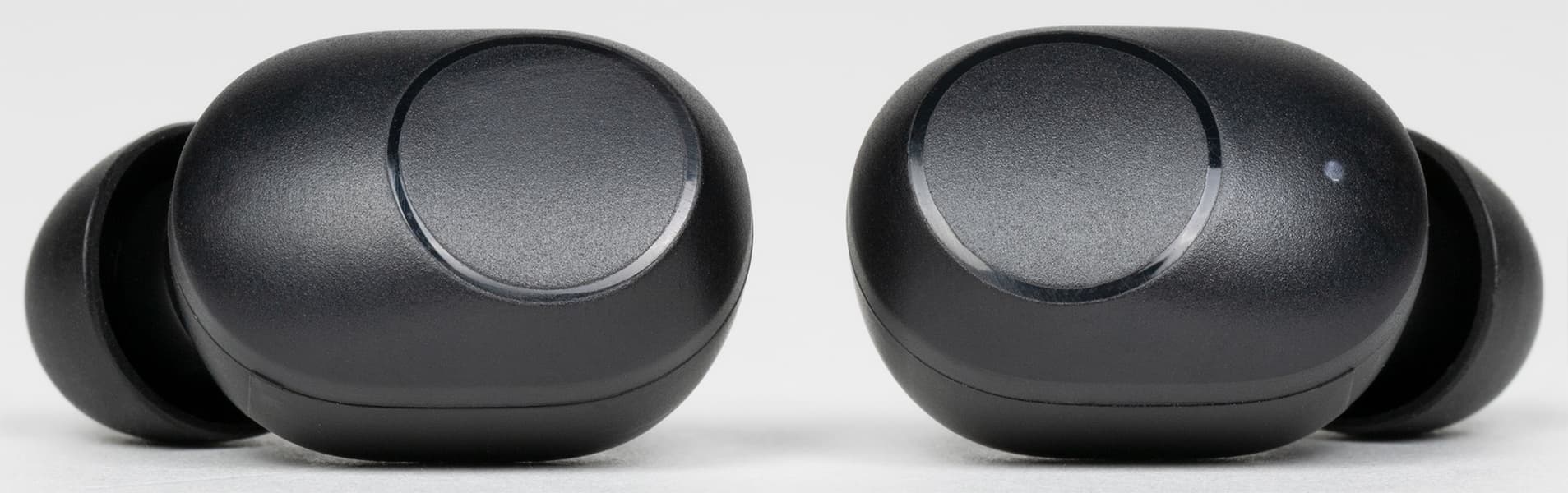 На внешней панели наушников размещены индикаторы зарядки и режима работы, которые совершенно не видны в выключенном состоянии. Сенсорные панели для управления выделены с помощью кольца из глянцевого пластика.