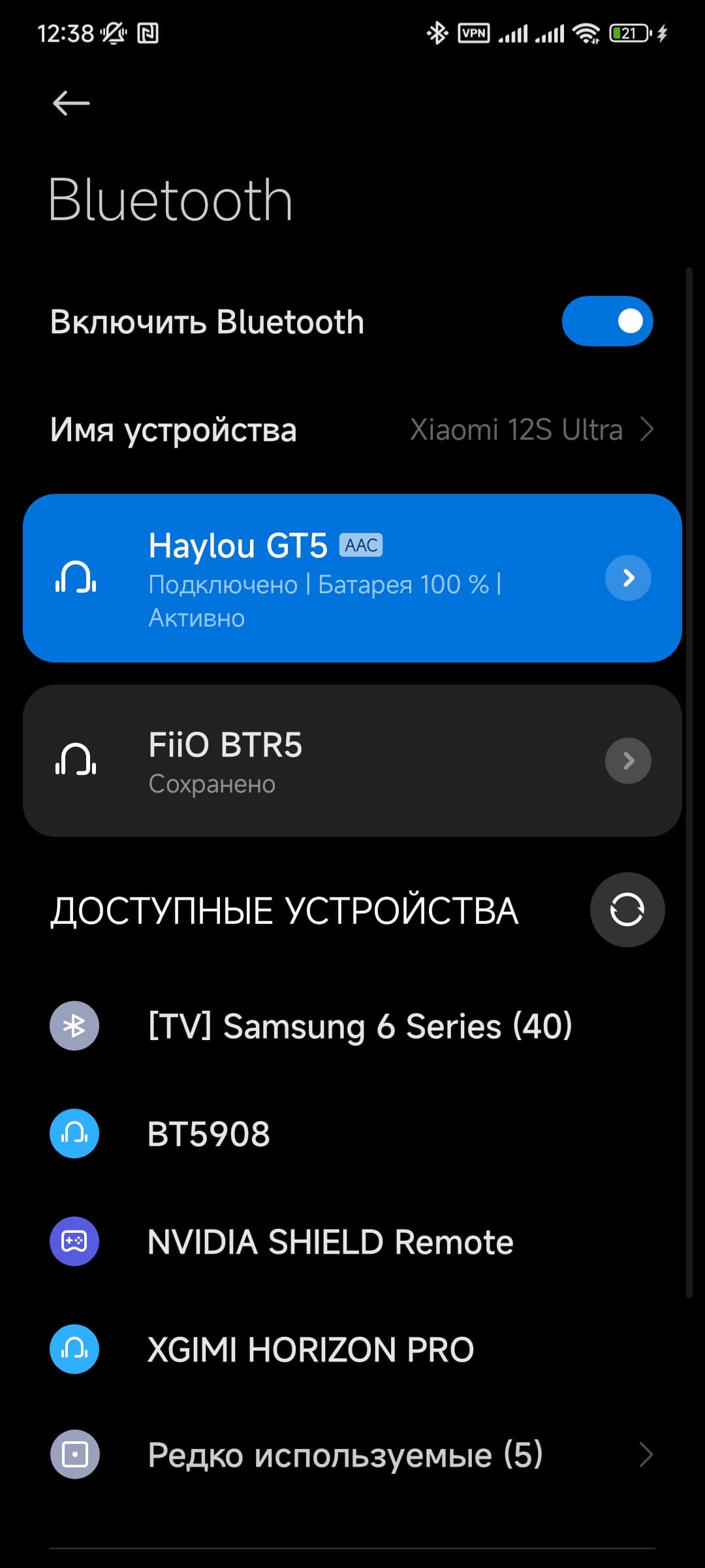 Подключается гарнитура совершенно стандартным образом — через соответствующее меню используемого гаджета. После извлечения из кейса Haylou GT5 пытаются соединиться с уже «знакомыми» устройствами, если этого не происходит — активируют режим сопряжения.