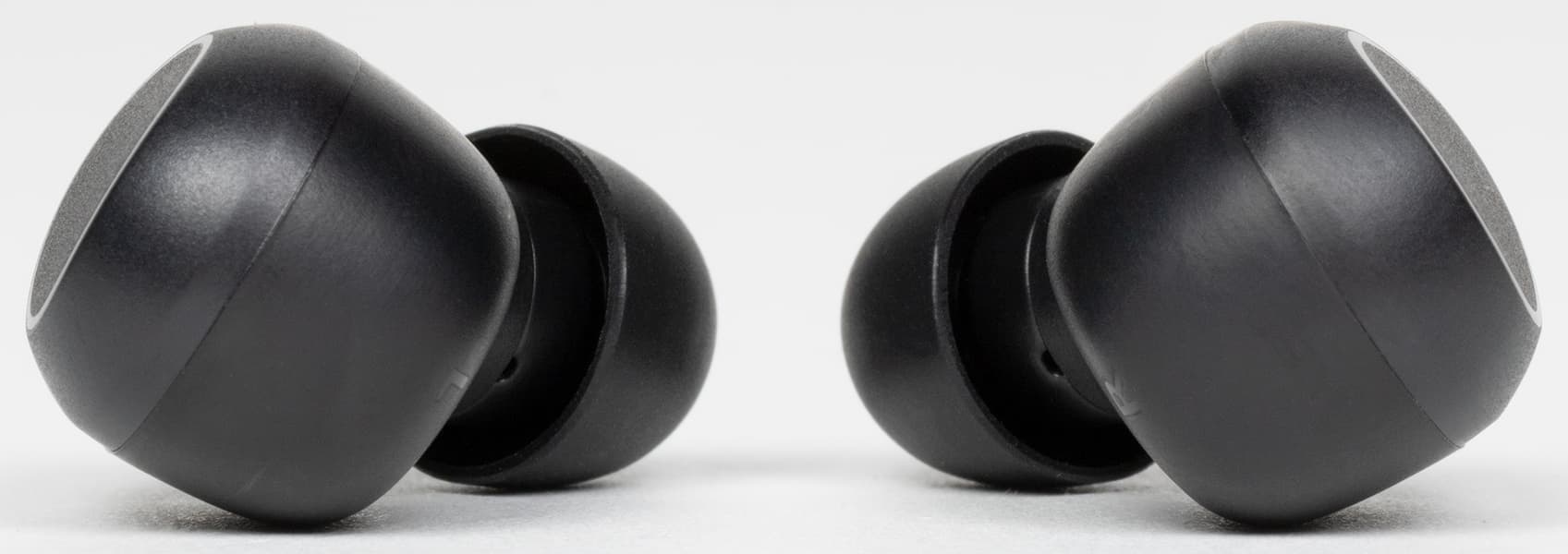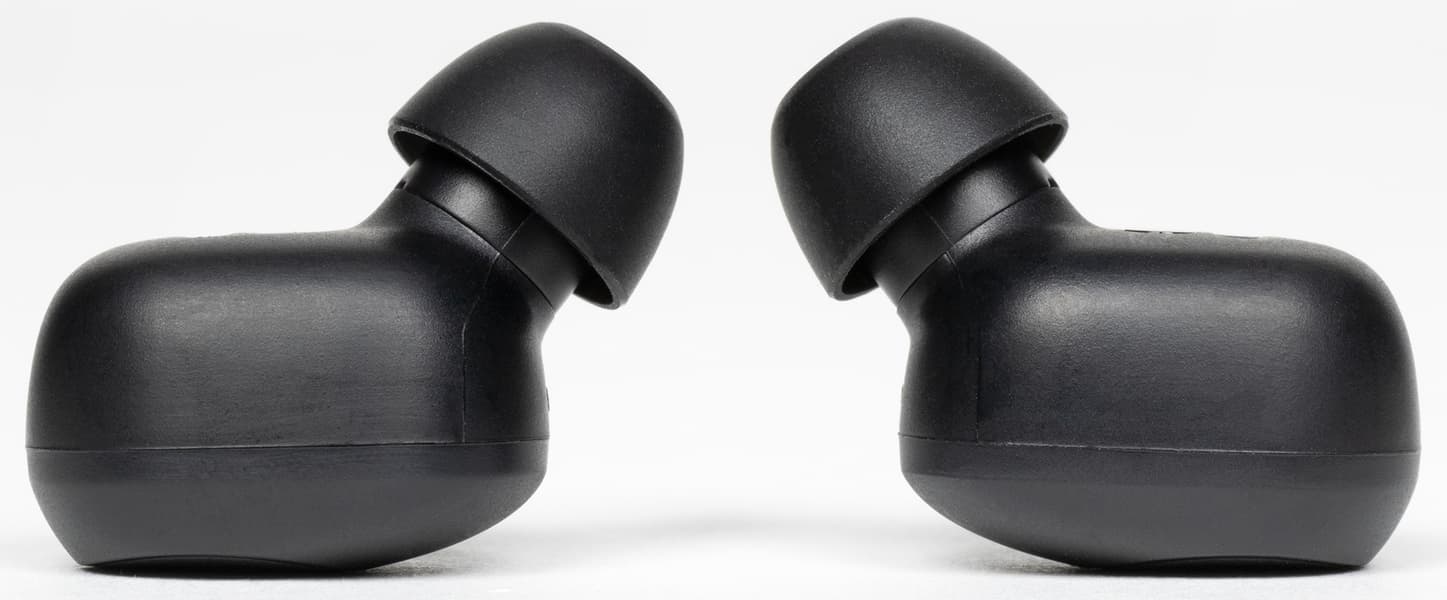 Посадка у наушников своеобразная из-за формы корпуса, которую мы уже обсуждали чуть выше. Он очень компактный и не имеет выступов для опоры на чашу ушной раковины, большая часть ответственности за удержание гарнитуры в ушах ложится на силиконовые насадки и звуковод. Соответственно, он сделан сравнительно длинным для глубокого погружения в слуховой канал, что может не понравиться целому ряду пользователей.