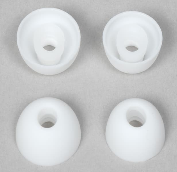 Силиконовые насадки надежно удерживаются выступом на конце звуковода. При этом снять и надеть их обратно можно без лишних усилий.