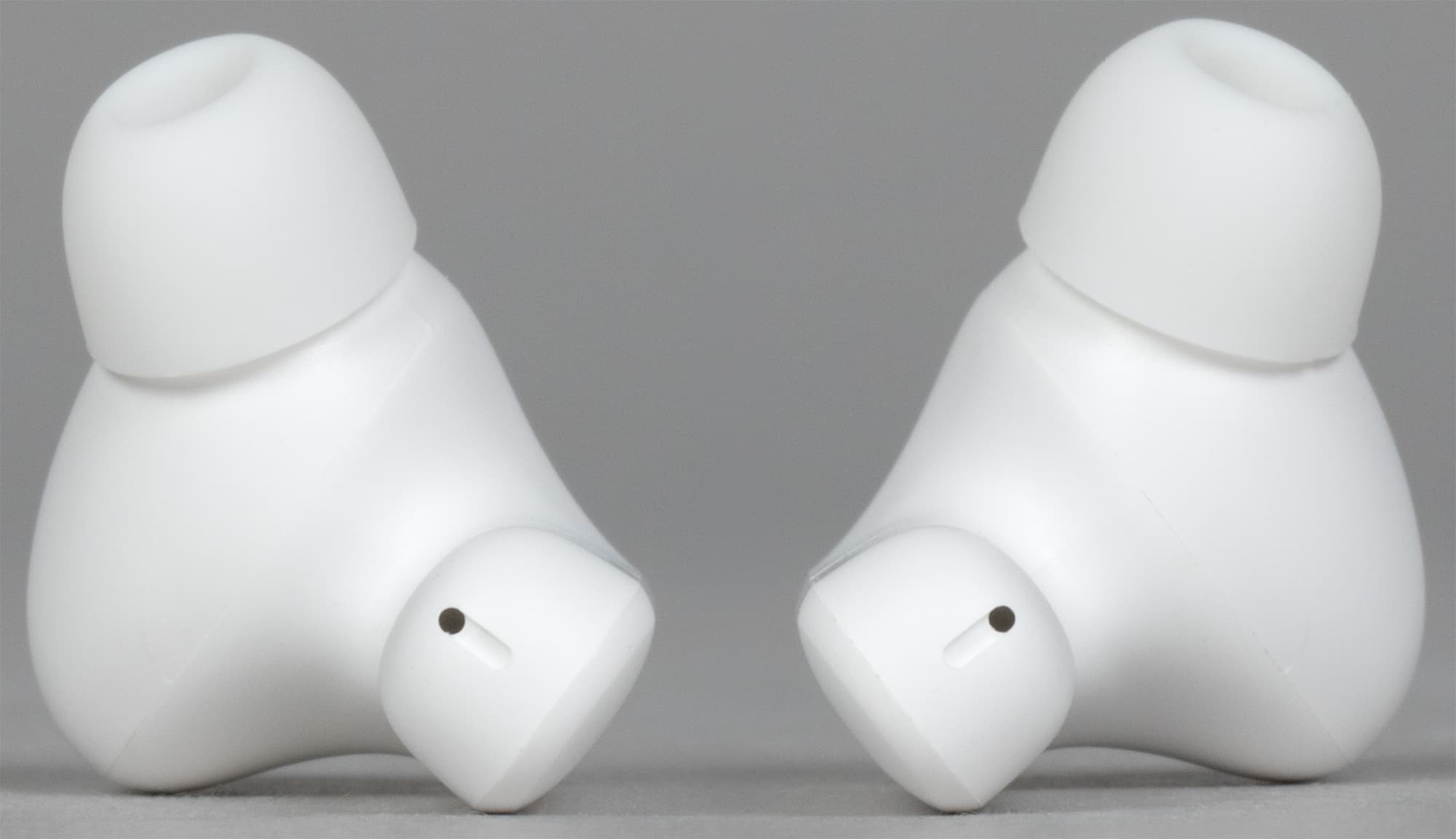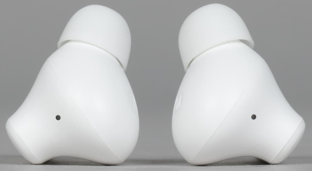 На торцах «палочек» видны отверстия микрофонов для голосовой связи внутри небольшого углубления, которое чисто теоретически может немного защитить от «задувания».