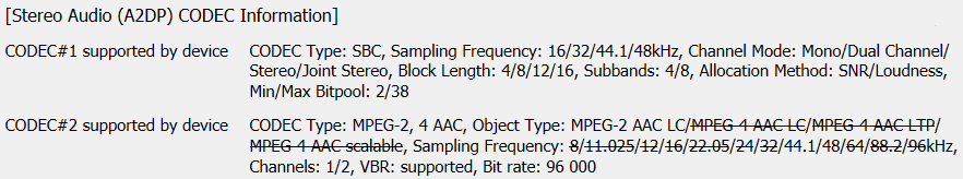 Полный список поддерживаемых кодеков и их режимов мы традиционно получили с помощью утилиты Bluetooth Tweaker. Кодеков два — SBC и AAC, что является вполне стандартным минимальным набором для бюджетной гарнитуры.