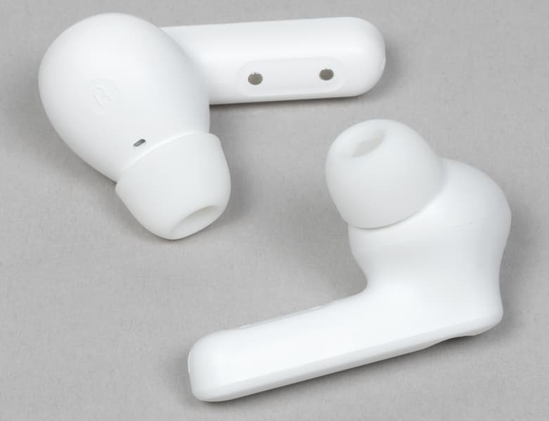 Выполнена гарнитура в белом цвете, других вариантов оформления мы пока не видели. Дизайн простой и приятный — от бюджетной гарнитуры мы большего и не ждем.