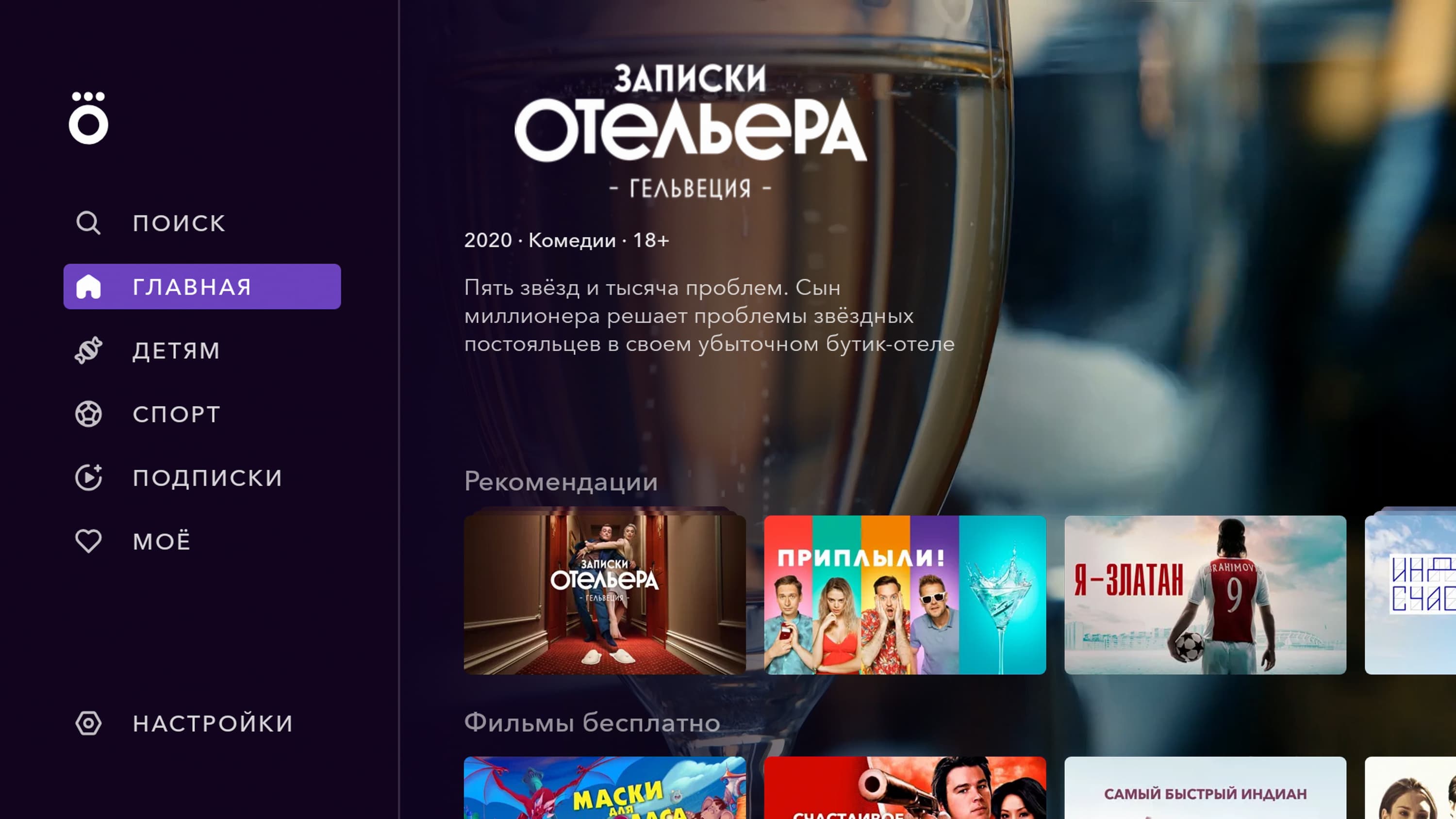 Главное меню плеера будет знакомо каждому владельцу Smart-телевизора с Android на борту. Впрочем, и другие телевизорные ОС выглядят как под копирку с небольшими вариациями. Все наглядно, понятно, не требует обучения и расшифровки. Мы уже, правда, немного тут похозяйничали, установив приложение Кинопоиск HD. Оно-то и вступило в права, заполнив экран плитками рекомендаций.