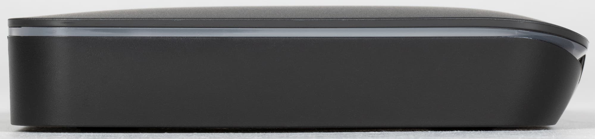 Такой дизайн стал привычным в сфере потребительского мультимедийного рынка ТВ-приставок: сплющенная коробочка с разными вариациями форм и иногда стильной подсветкой. Такая подсветка имеется и в рассматриваемом устройстве. Цвет ее меняется с фиолетового на голубой в зависимости от режима работы.