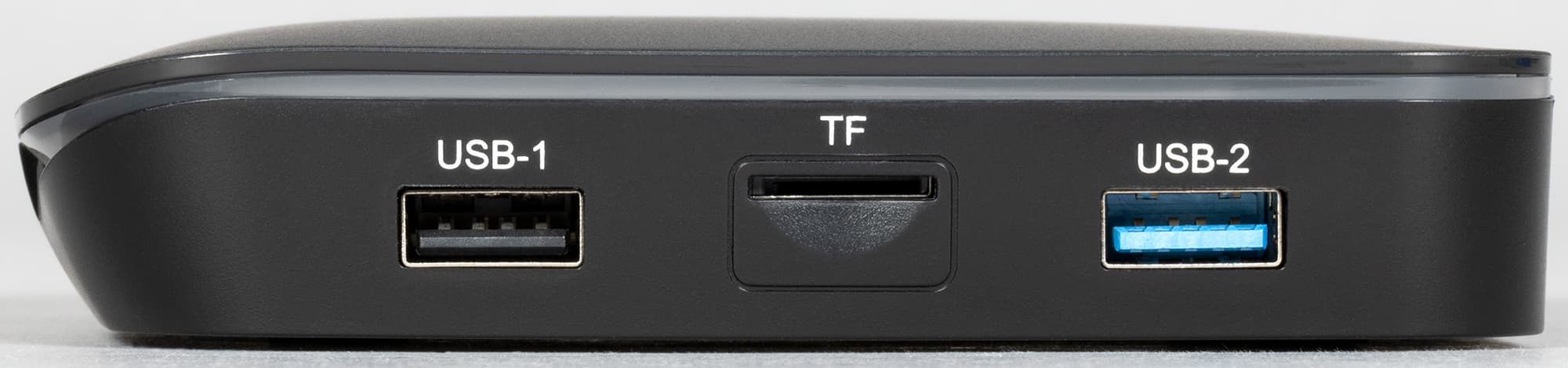 Зато с интерфейсами у плеера все в полном порядке, самое необходимое в наличии: питание, LAN, HDMI, AVI, USB 2.0 и 3.0. Ну и, конечно, слот для карты памяти формата microSD/SDHC/SDXC. Интерфейсы расположены сзади и сбоку, причем «стационарные» находятся сзади, а сменяемые — сбоку. Логично.