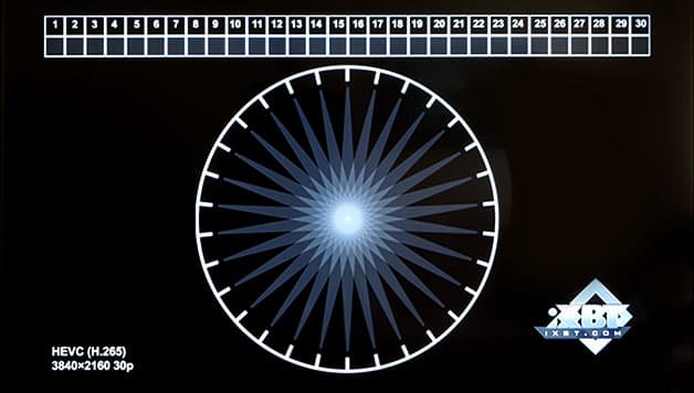 Можно видеть, что плеер прекрасно справляется с 8K-видео, но при условии, если частота кадров в таком материале не превышает 30 кадров в секунду. При воспроизведении видео с более высокими частотами плеер начинает пропускать кадры, что выражается в темных пробелах вместо белых стрелок. Между прочим, далеко не каждый компьютер с хорошей видеокартой способен на такое. Сравните цену компьютера со стоимость рассматриваемого плеера. Но эмоции — потом, давайте оценим качество воспроизведения 4K-материала. Здесь мы применим не только кодек HEVC, но и неподходящий для 4K кодек — устаревший AVC (H.264), который не предназначен для эффективного сжатия 4K-материала. Тем более, высокочастотного.
