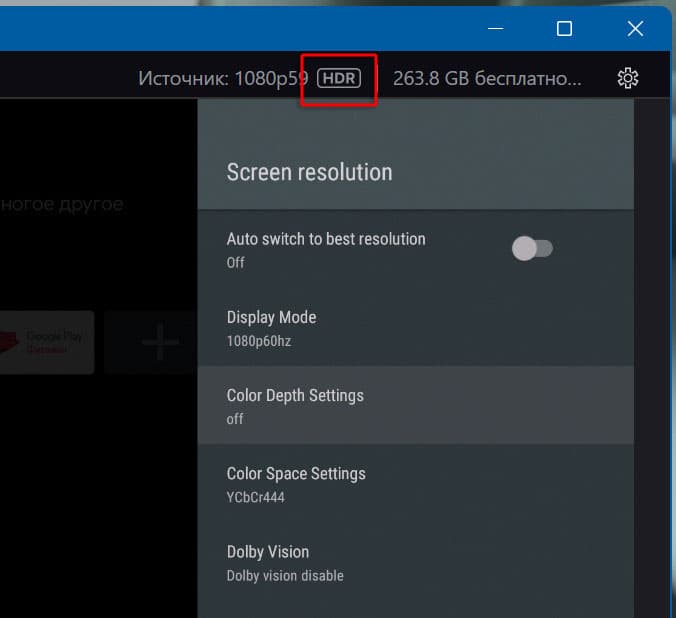 А вот настройки экрана (и не только) хранятся в отдельном пункте, который не переведен на русский: Droid Settings. Здесь имеется даже возможность включения поддержки Dolby Vision (это еще один способ передачи видео HDR).
