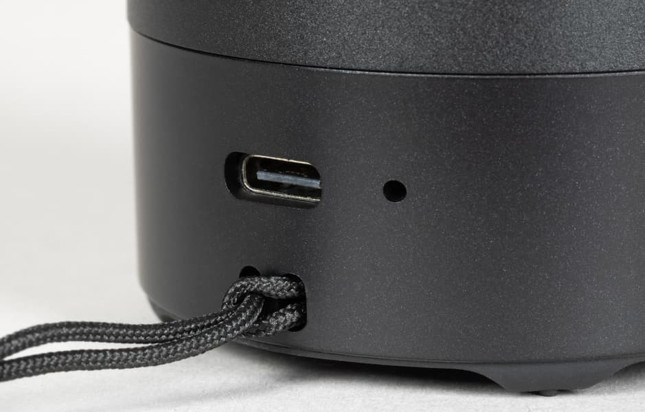 Рядом с креплением ремешка мы видим порт USB Type C для зарядки, а также отверстие микрофона для голосовой связи, который является еще одной «фишкой» Honor Choice Bluetooth Speaker mini.
