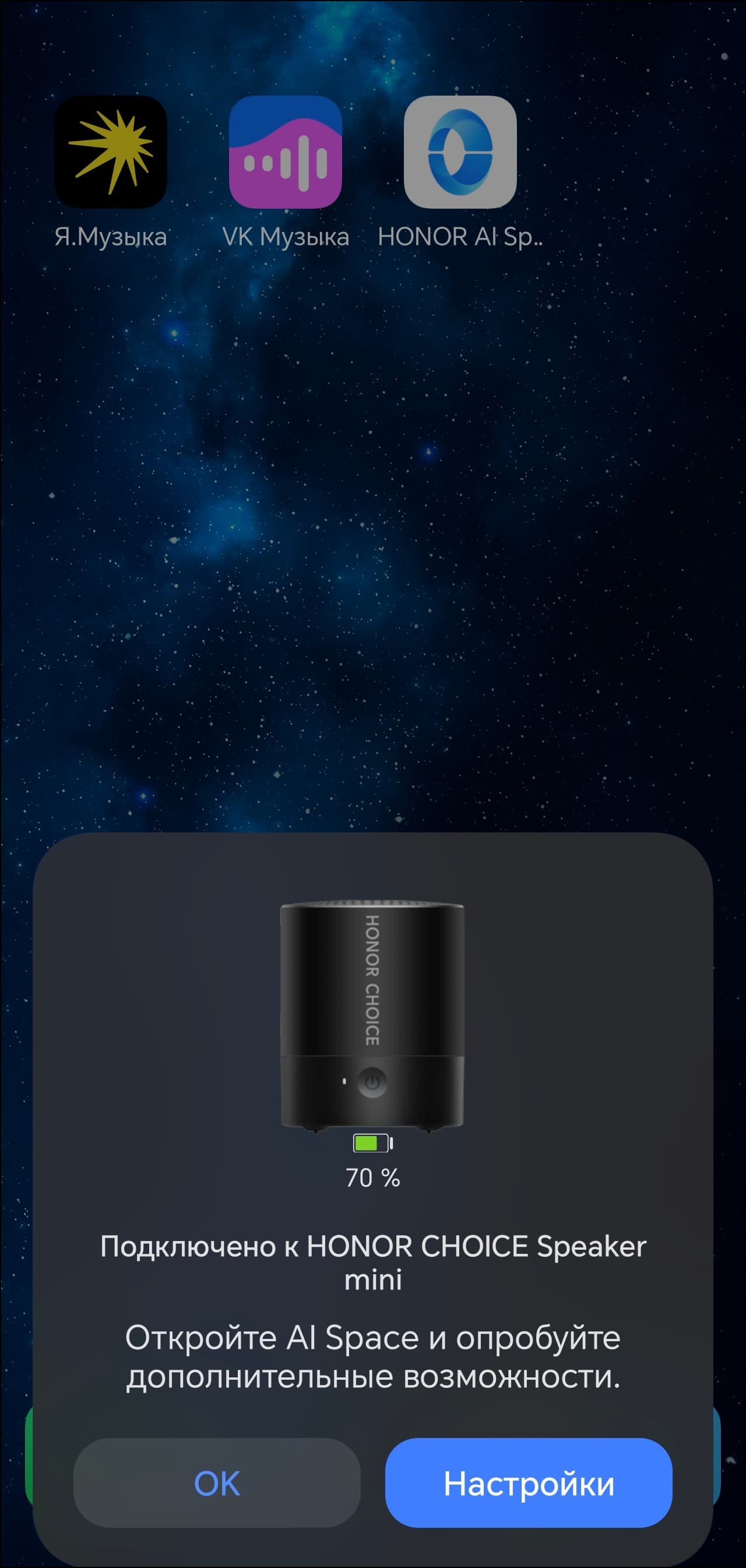 Предварительно стоит также поставить приложение Honor AI Space, если его на используемом гаджете еще нет. Доступных настроек там минимум, но кое-что полезное все-таки имеется. В частности, возможность обновить прошивку.