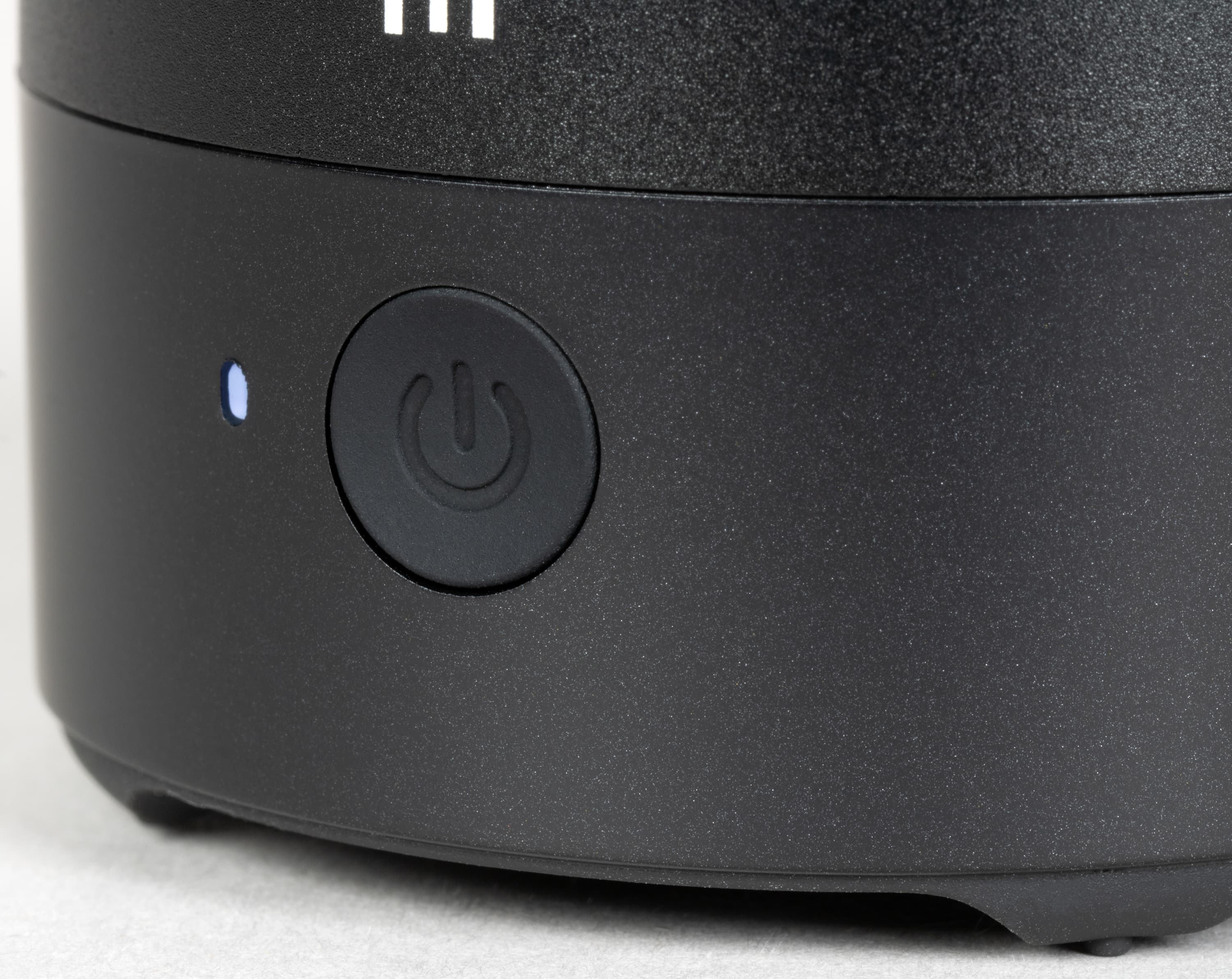 Всё управление акустикой происходит с помощью одной кнопки, отвечающей и за питание, и за ответ на вызов, и за воспроизведение. Регулировка громкости не предусмотрена — немного неудобно, но настолько маленькой колонке мы готовы это простить. Кнопка нажимается с ощутимым кликом и усилием выше среднего, да еще и размещена практически заподлицо с корпусом — всё это предотвращает случайные срабатывания.