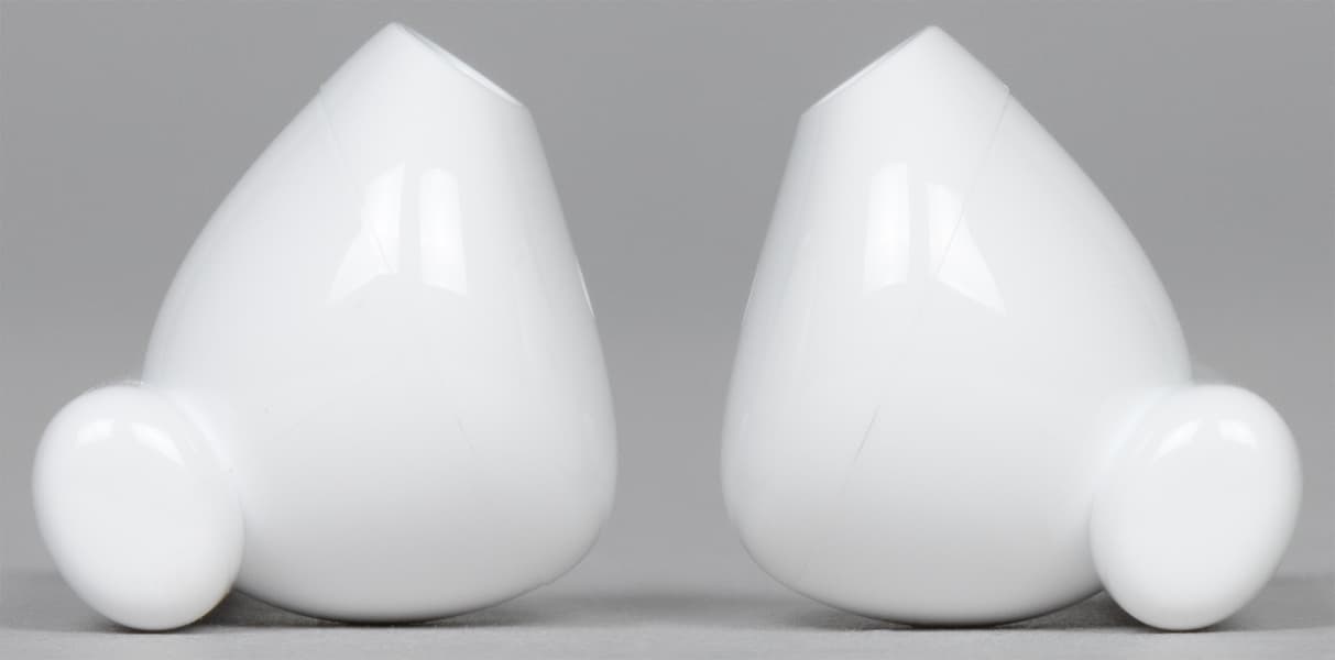 В нижней части «ножки» наушников расположена металлическая накладка. На ней размещены контакты для зарядки, она же — по сути единственный декоративный элемент на корпусе.