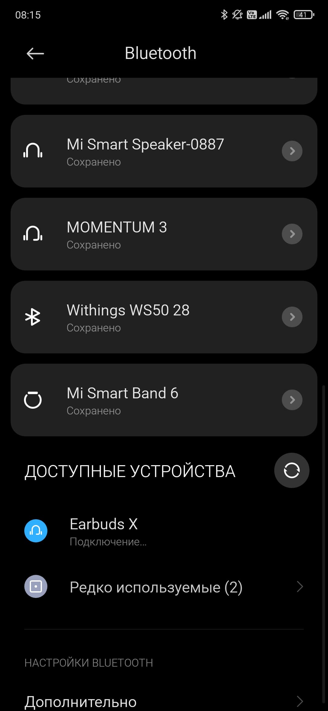 После открытия крышки кейса Honor Choice Earbuds X пытаются соединиться с уже «знакомыми» устройствами, если этого не происходит — активируют режим сопряжения, о чем сообщает индикатор на передней панели футляра. Далее остается найти их в соответствующем меню используемого гаджета. О подключении и других событиях устройство оповещает приятным булькающим звуком.