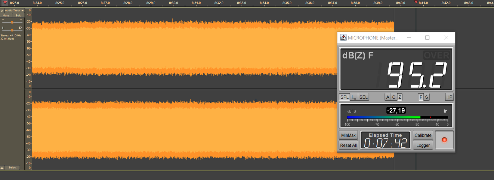 Производитель заявляет, что наушники способны проработать до 6 часов от одной зарядки, а зарядный чехол увеличивает автономность до 28 часов — вполне солидные показатели. Вкратце напомним нашу методику тестирования автономности беспроводных наушников. Безопасным уровнем звукового давления при прослушивании музыки считается 75 дБ, но на практике большинство слушателей предпочитает уровень 90-100 дБ. Мы транслируем в наушники белый шум, фиксируя уровень SPL в районе 95 дБ, сразу после старта воспроизведения запускаем запись сигнала с измерительного стенда — по длине получившегося трека легко понять, сколько проработал каждый из наушников.