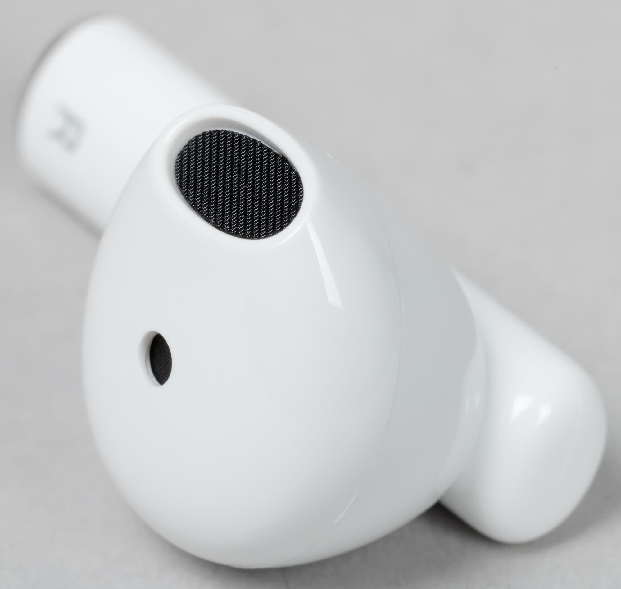 Отверстие звуковода прикрыто сеткой, заметно утопленной внутрь — очистить ее при необходимости будет немного сложно, но вполне возможно. На боковой поверхности расположено круглое отверстие, которое в данном форм-факторе не только является компенсационным, но и отвечает за улучшение передачи НЧ-диапазона.