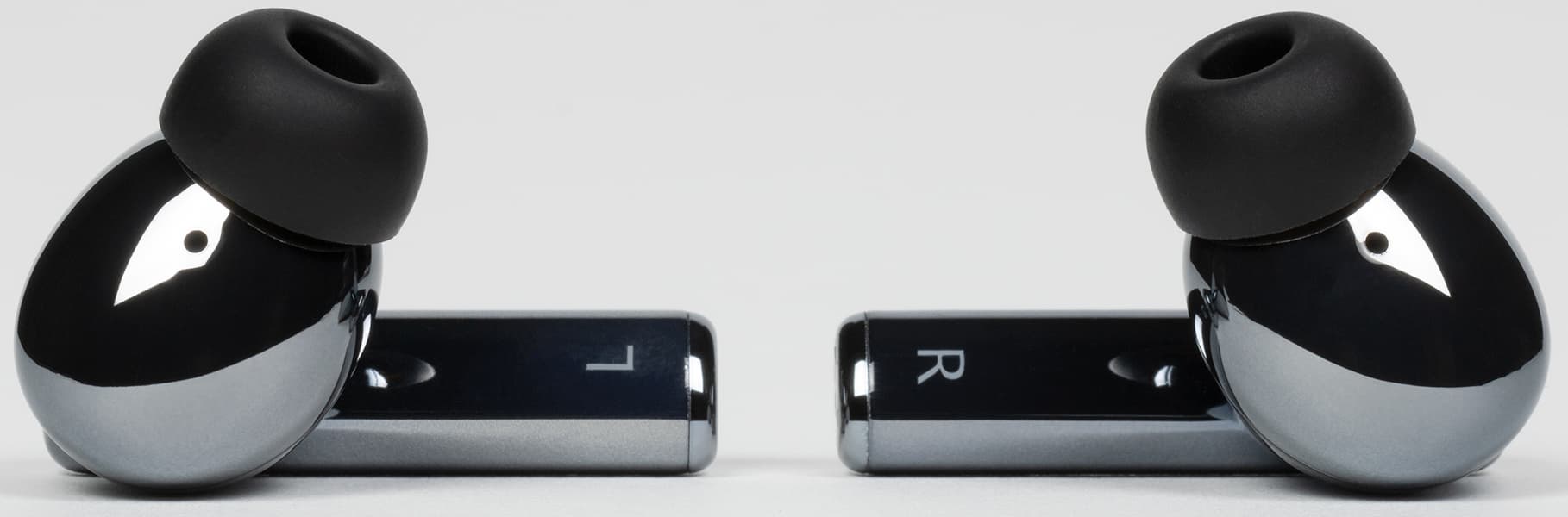 Боковые поверхности «палочек» являются сенсорными, но в дизайне это никак не отражено. На внешней стороне нет никаких надписей или декоративных элементов — строгость и даже аскетичность дизайна гарнитуры порадовала особо.