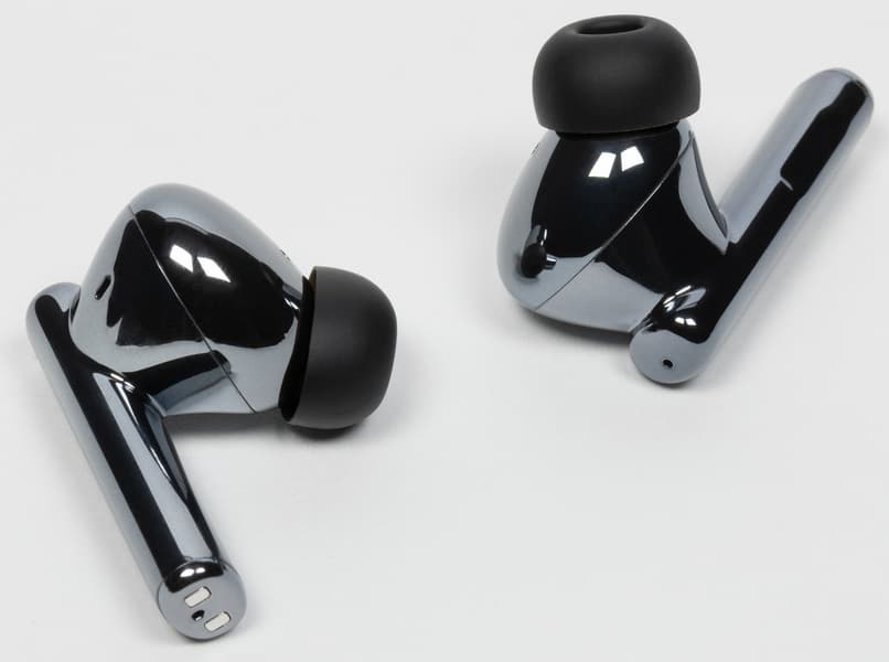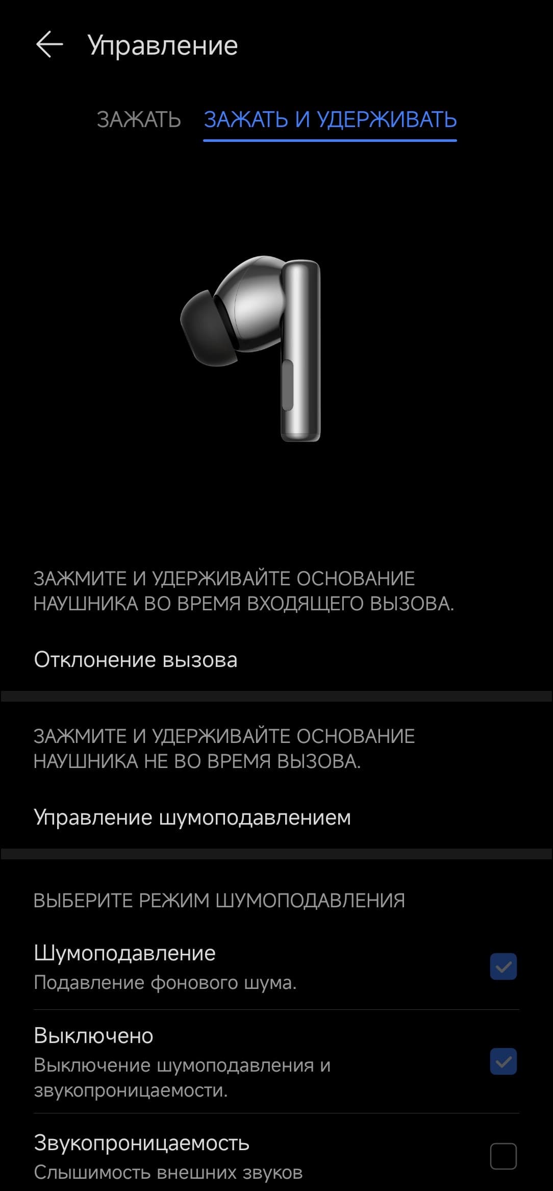 На самих наушниках управление осуществляется сжатием «ножки», по бокам которой размещены сенсорные зоны. При этом в наушниках раздается отчетливый клик, позволяющий быть уверенным, что действие произведено. Сам сенсор никаких звуков, конечно, не издает — клик имитируется с помощью динамиков наушников.