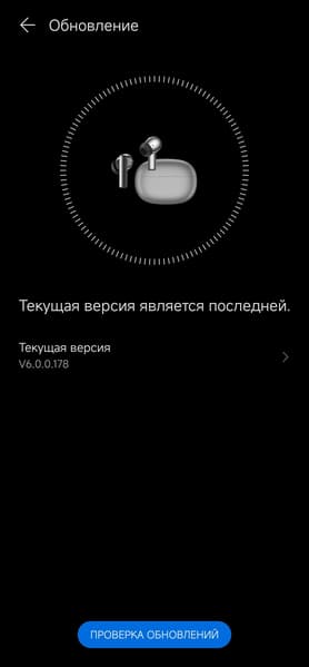 Первым делом — конечно, залезем на вкладку настроек. И не обнаружим там ничего особо интересного, только данные об устройстве, да версии ПО — всё важное вынесено в отдельные кнопки на главной странице. Но вспомним, что перед дальнейшей работой неплохо бы проверить актуальность прошивки гарнитуры — этим и займемся, тапнув по кнопке в правом нижнем углу.