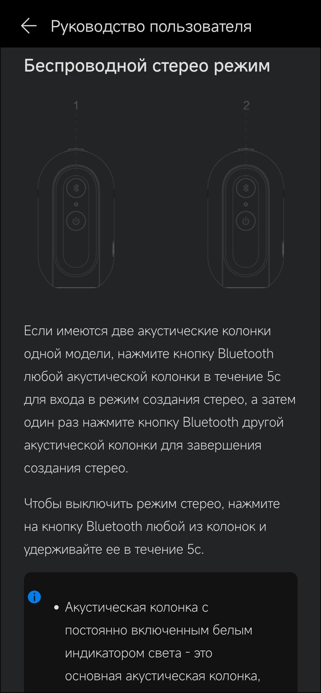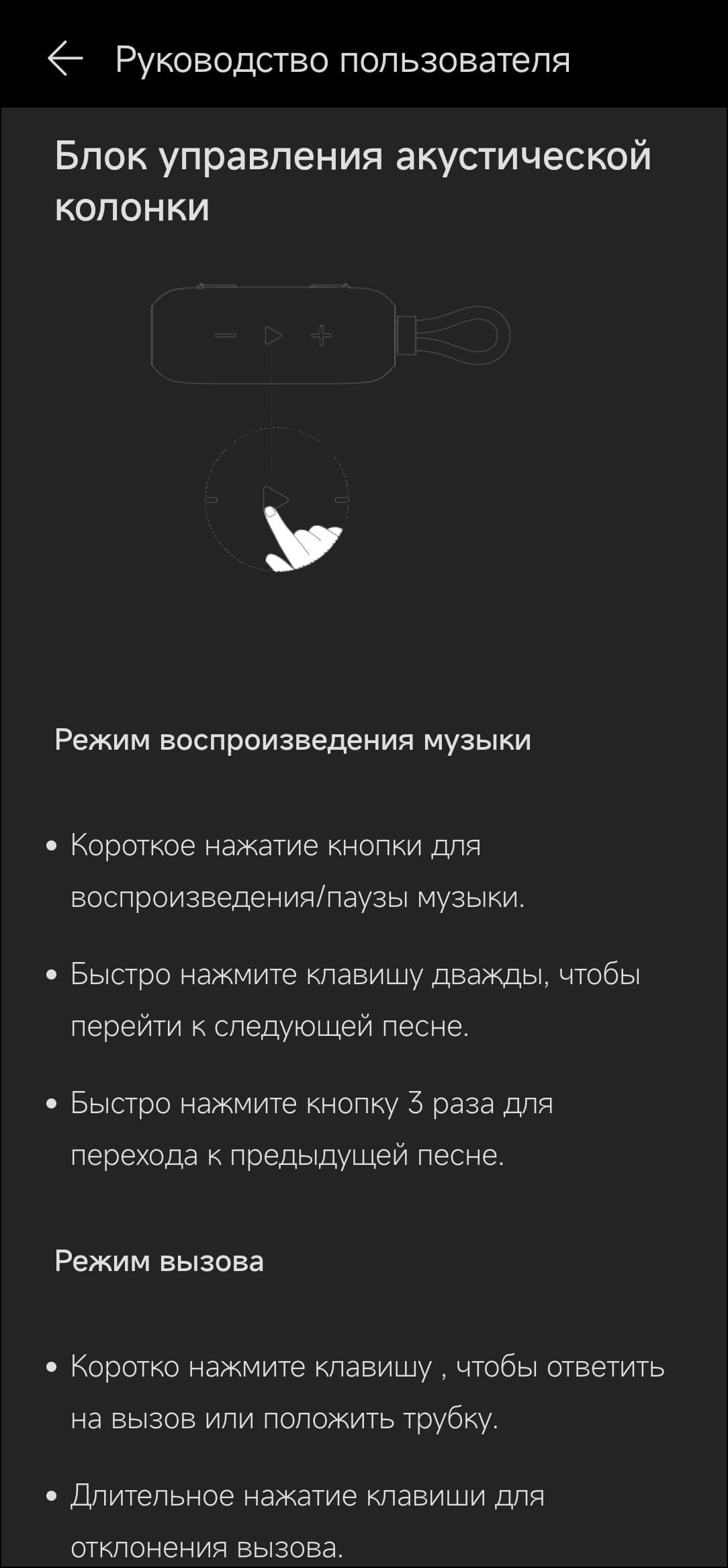 Также колонка поддерживает взаимодействие с приложением Honor AI Space — правда, на данный момент количество настроек минимально. Но польза от него всё же имеется: как минимум, можно посмотреть уровень заряда аккумулятора. Также можно настроить эквалайзер, вернее — выбрать один из трех режимов. Прямо скажем, не очень-то много. Но учитывая размеры и стоимость колонки — спасибо и на том.