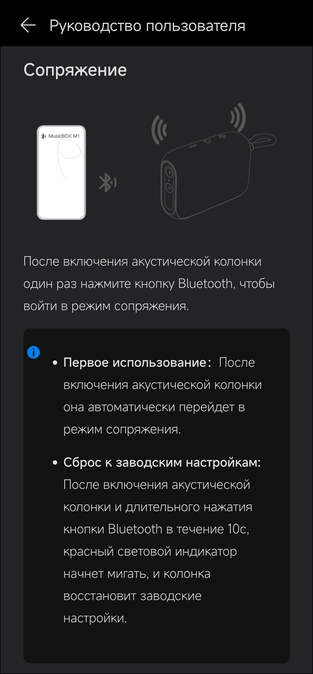 Клавиши питания и сопряжения размещены на торце корпуса. При продолжительном нажатии клавиша Bluetooth также запускает подключение двух Honor Choice MusicBox M1 к одному источнику — такая возможность тоже предусмотрена, причем они объединяются в стереопару — каждая отвечает за свой канал