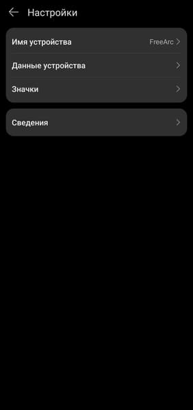 На главной странице приложения можно увидеть уровни зарядки каждого из наушников и кейса, из открываемого по тапу на иконку в правом верхнем углу меню переходим на вкладку настроек, где можно поменять имя устройства, поместить иконку быстрого доступа к его странице на рабочий стол и посмотреть технические данные.