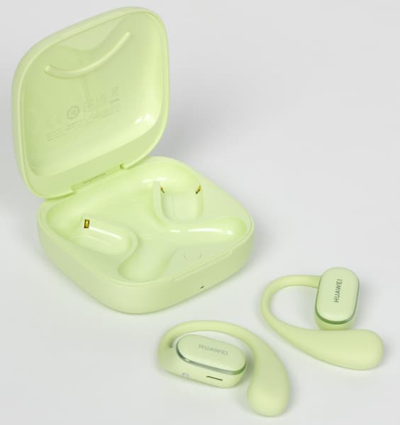 Гарнитура Huawei FreeArc попала к нам до официального старта продаж в упаковке, которая заметно отличается от той, которую в итоге увидят российские пользователи. Потому показывать ее в обзоре мы не будем. Цветовых вариантов у устройства три: классические черный и белый, а также яркий и оригинальный светло-зеленый, который и был у нас на тестировании.