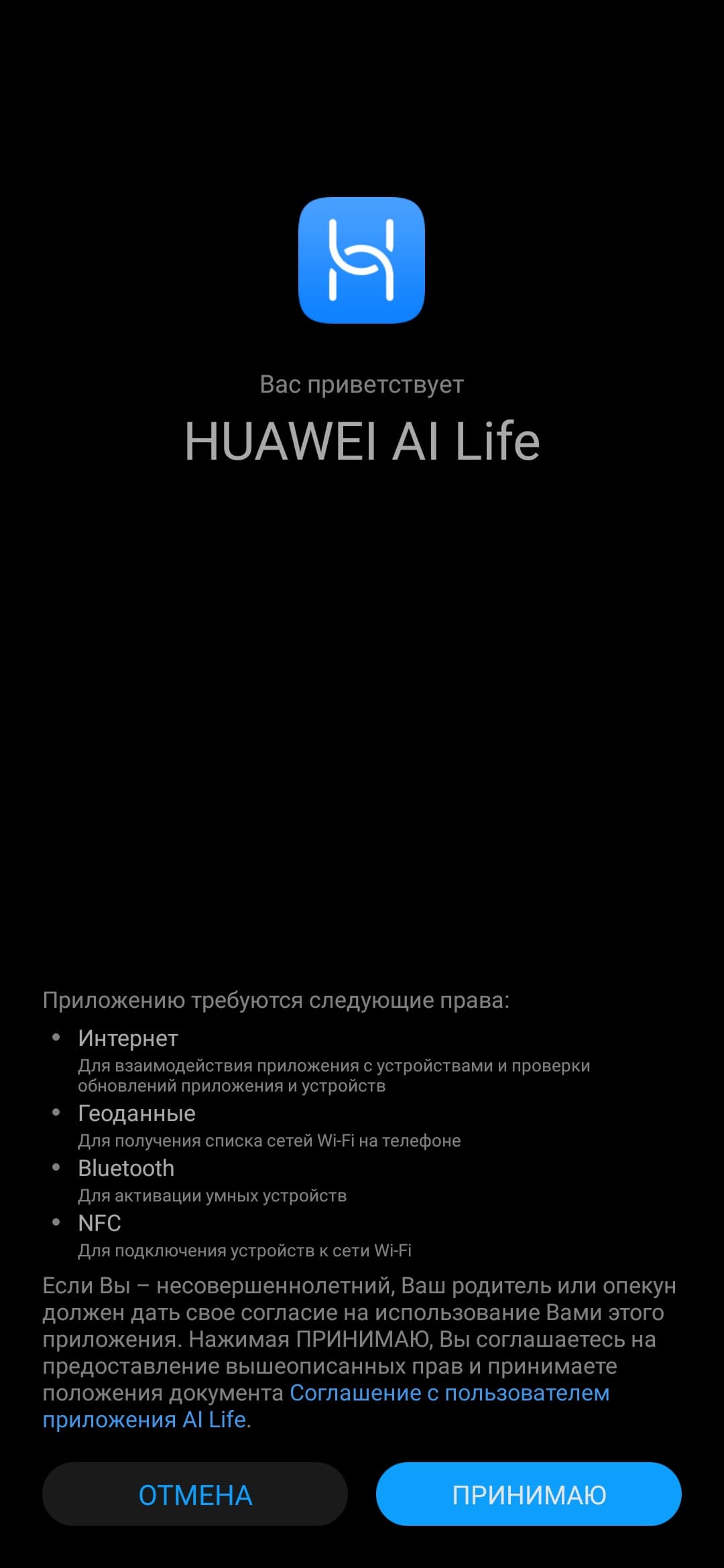 Первое, что стоит сделать перед подключением наушников — установить программу Huawei AI Life. Полнофункциональная версия доступна только под Android, так что обладателям гаджетов с iOS все написанное ниже вряд ли будет сильно интересно. Хоть при желании и можно подключить наушники к Android-смартфону, обновить прошивку и сделать необходимые настройки, а потом перейти к использованию под iOS. В общем, устанавливаем ПО, решение о предоставлении тех или иных разрешений каждый пользователь может принимать самостоятельно.