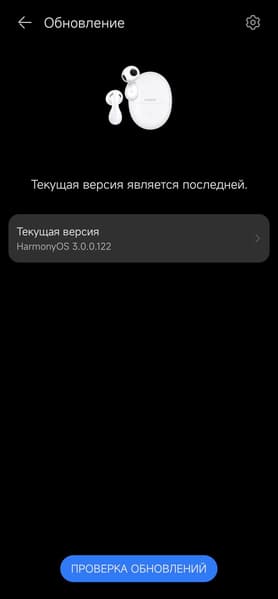 После первого подключения гарнитура проверяет наличие свежей прошивки, если находит — устанавливает за несколько минут. Далее пользователь оказывается на главном экране устройства, в верхней части которого размещена информация о зарядке каждого из наушников отдельно и кейса.