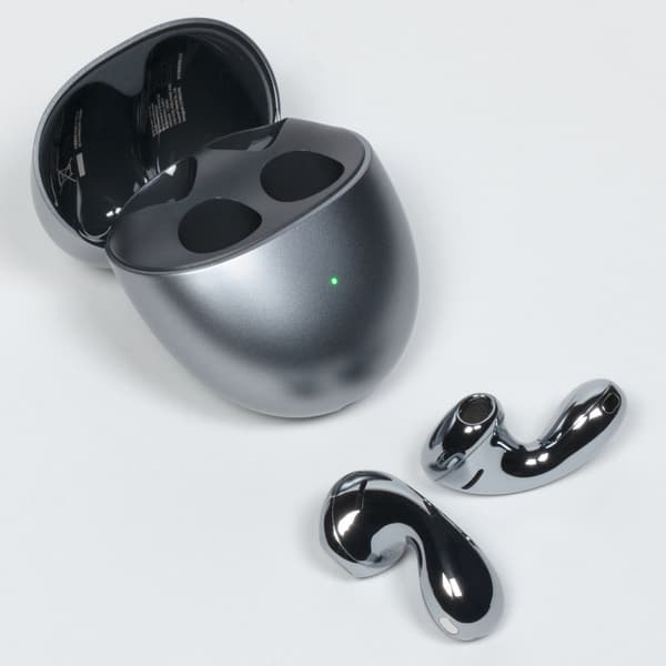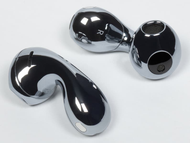 Микрофоны на нижней части «палочек», по всей видимости, используются как для работы «шумодава», так и для передачи голоса. По бокам от них видны контакты для зарядки.