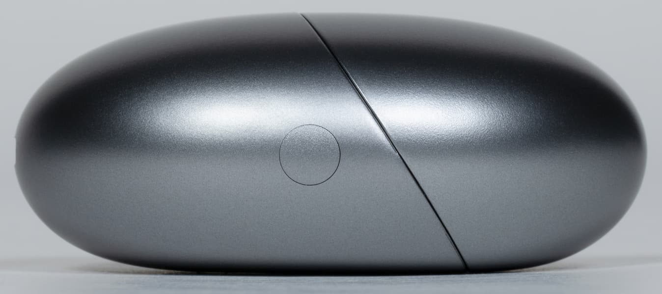 Дизайн, конечно, сразу привлекает внимание — пожалуй, такого мы еще не видели. По форме кейс больше всего похож на яйцо, хотя у всех свои ассоциации — некоторым он, например, напоминает упаковку от дорогой парфюмерии. Кейс компактный, задняя стенка практически плоская, острых углов нет — соответственно, в кармане его носить удобно.