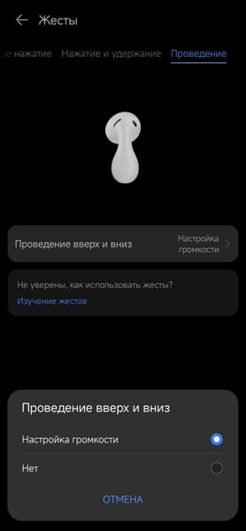 Ну и, конечно, с главного экрана настраивается активное шумоподавление. Можно вручную выбрать более агрессивный вариант работы или менее — «Обычный» или «Комфорт» соответственно. Либо доверить выбор автоматике, остановившись на режиме «Динамический». Режима «звуковой прозрачности» тут нет, для наушников-«вкладышей» он не актуален ввиду далеко не самого высокого уровня пассивной звукоизоляции.